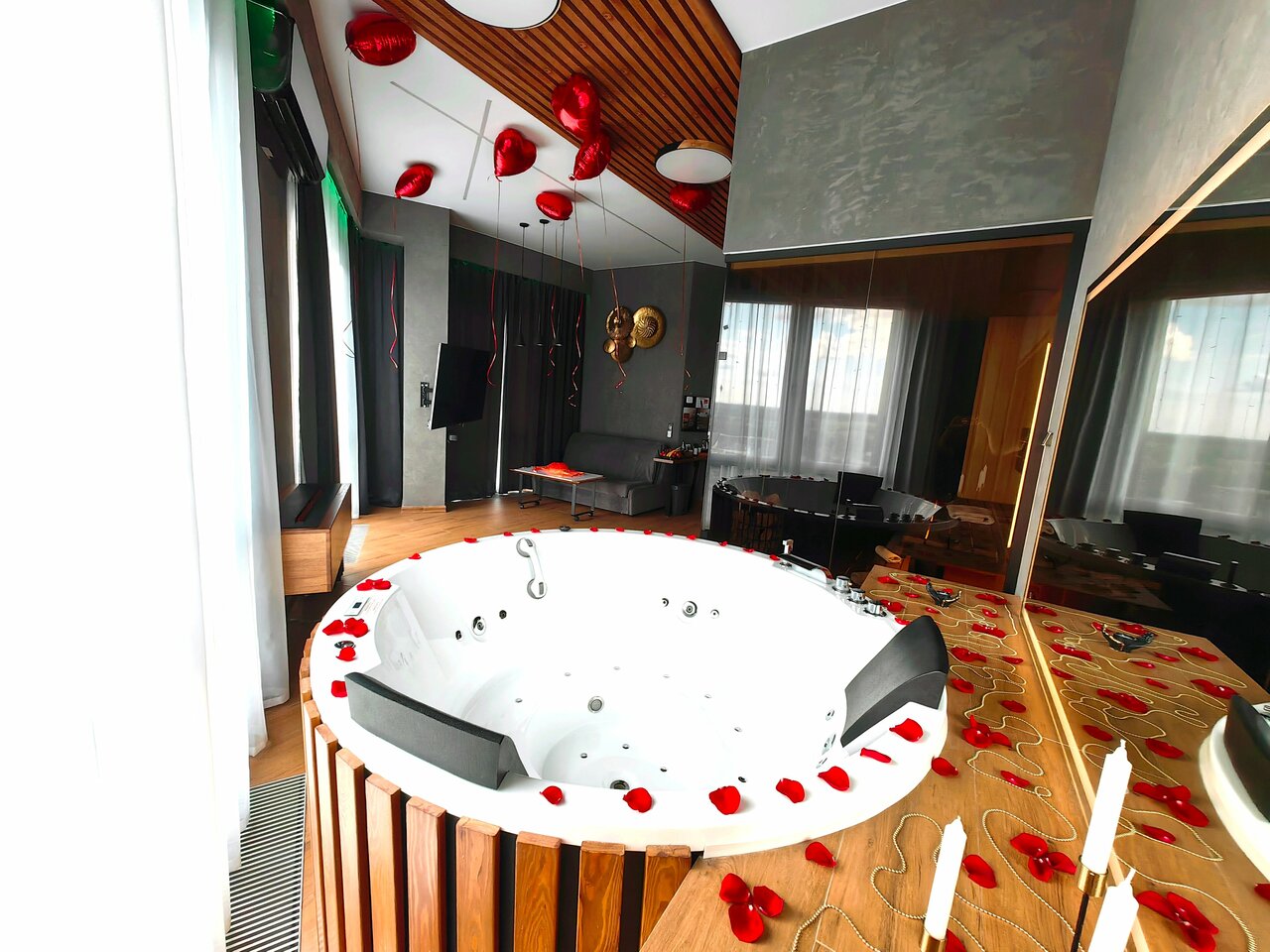 Отличное место для романтического вечера, сауна, джакузи и потрясающий вид из окна.