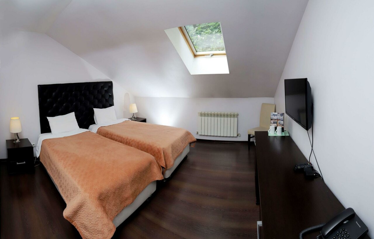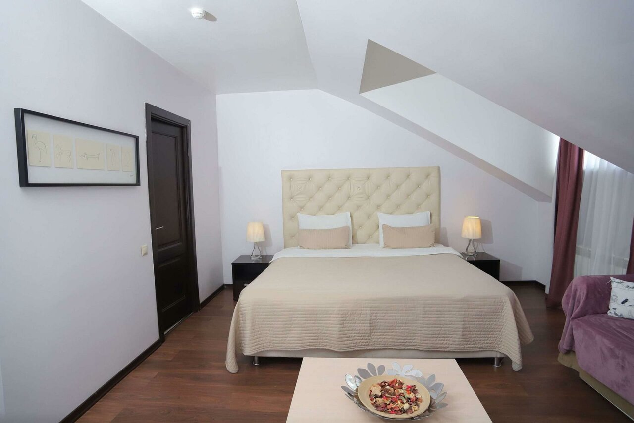 Отель хороший, уютные номера,кондиционеры бесшумные, удобные кровати,все чисто , потрясающе вежливый и отзывчивый персонал, нонам не удалось практически поспать; 12 августа приехали из другого города к друзьям на свадьбу, остановились в этом отеле, ушли спать в 23ч, но там шла еще одна свадьба, где музыка не играла, а просто гремела!!!!, до 01.30!!!!!!!! и казалось, что все это действо было в соседнем номере. Почему другие постояльцы должны не спать и зависеть от мероприятия??? Уснуть сразу, по понятным причинам, не удалось, и под утро опять в коридоре кто то борогозил, орал, хлопал дверьми-службы охраны , вероятно, в этом заведении нет. При выборе надо учитывать, будут ли шумные мероприятия в дни вашего посещения этого отеля. Хороший и атмосферный ресторан, к персоналу нет нареканий. Хотелось бы порекомендовать друзьям , но есть ‘НО’..
