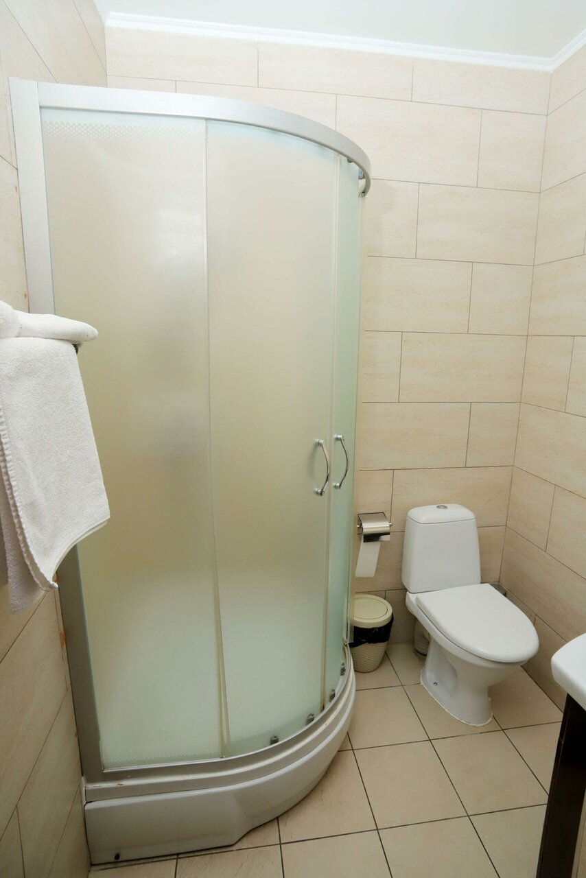 Номер чистый, кровать большая, белое бельё, телевизор есть, но общая антенна не работала, сантехника хорошо работает, а вот поддон в ванне быстро наполнялся водой