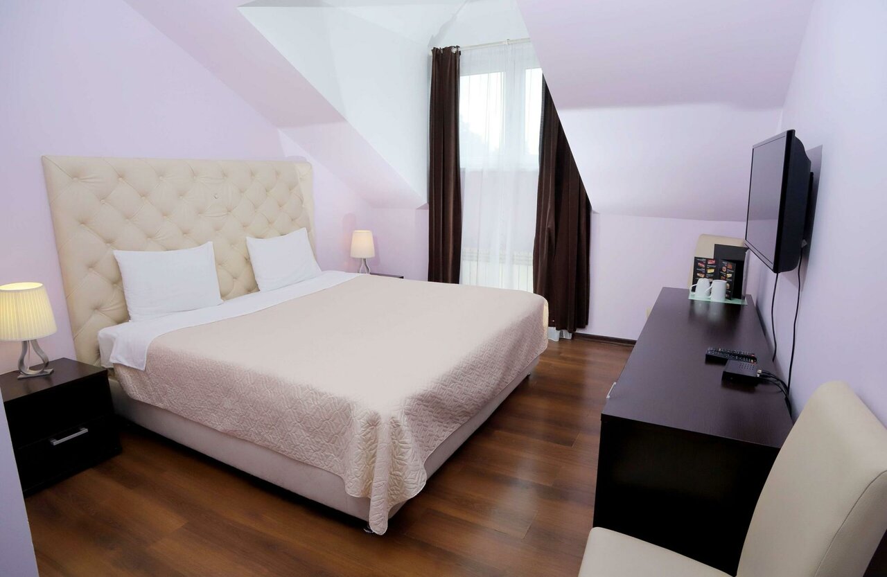 Отличная гостиница. В номере чисто и все стерильно,также очень веусно пахнет. Интерьер тоже очень приятный глазу. Цена за номер приемлимая и очень выгодная.Еда очень вкусная,свежая и горячая,всем советую эту гостиницу!