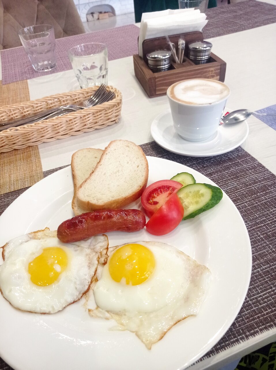 Жили в номере комфорт, с окном….Очень старые номера..и очень тёмные. Для макияжа выкручиваться нужно у окна.. Уборки в номере за три дня не было. Фен, бумагу туалетную нужно запрашивать у персонала.. В душевой кабине очень грязно.. Что не радовало. Персонал дружелюбный.. Тут без претензий Завтрак скромный.. Но вполне съедобные. Обычно яичница, огурец, помидор и к ней либо сосиска и батон, либо сыр, колбаса и Булочки.. Булочка тёмная огонь.. Очень вкусная.)) чай, растворимый кофе.