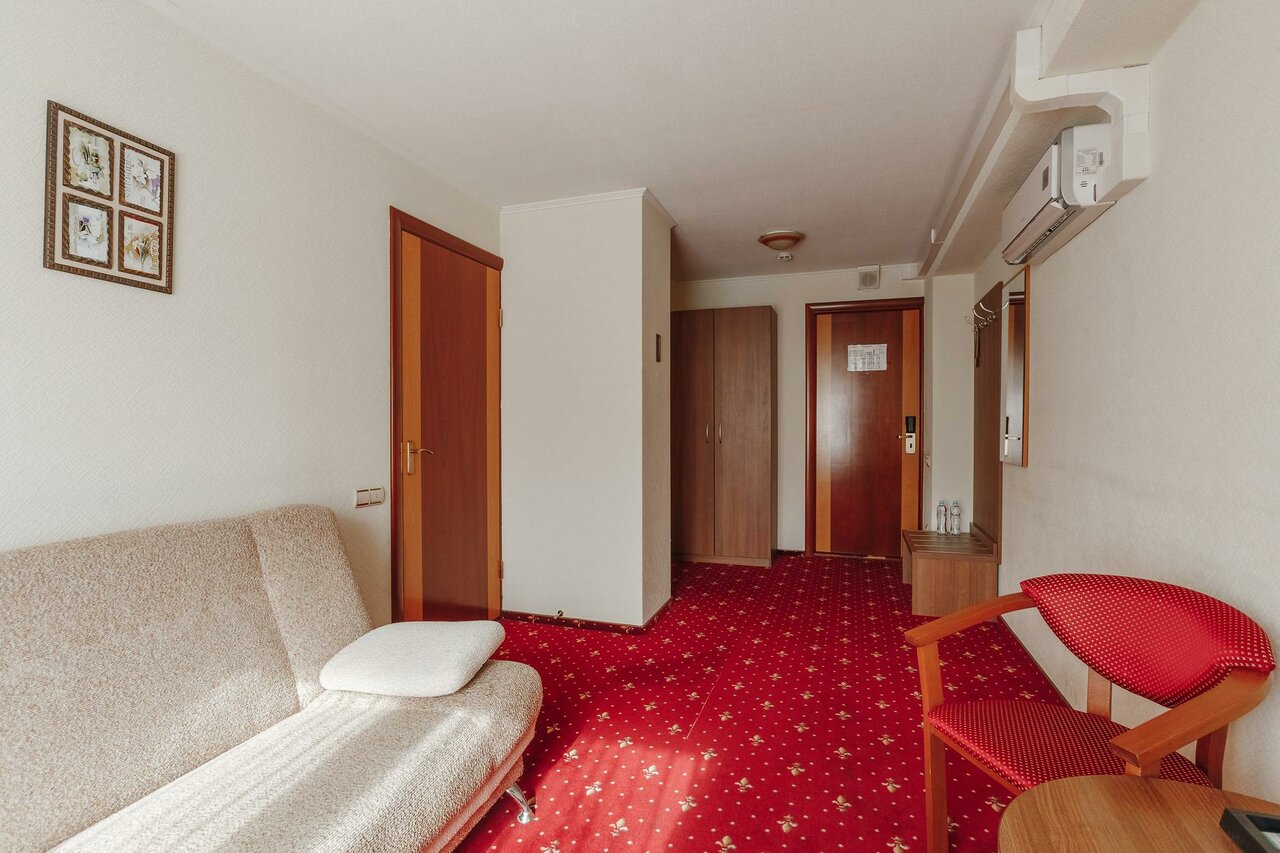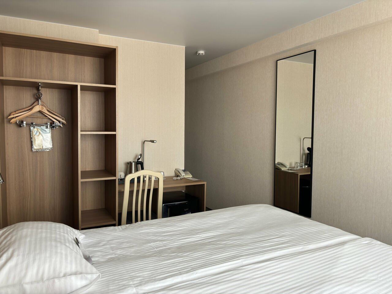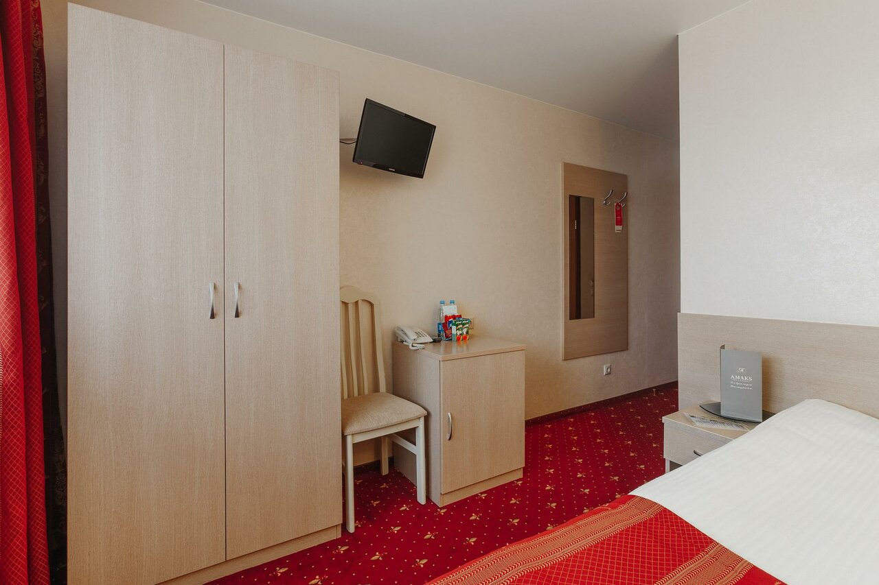 Хорошая гостиница, чистый простой номер, вкусные завтраки, приветливый персонал. из минусов, на мой взгля — в номере не хватает чайника и освещение в санузле тускловато.