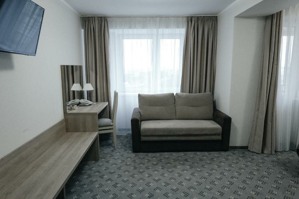 Останавливались на две ночи 8-10 июня.. Двухместный номер стандарт- полностью соответствуют фото номера и уровень комфорта. В номере чисто,уборка и замена полотенец есть. Пользовались парковкой- просторная на трёх площадках, всего 10 руб/час. При выезде с территории парковки в город плата за машиноместо приостанавливается.При желании можно позавтракать-шведский стол(400р/ч),пообедать(500) и поужинать(600р/ч). Персонал приветлив. Хорошие впечетления