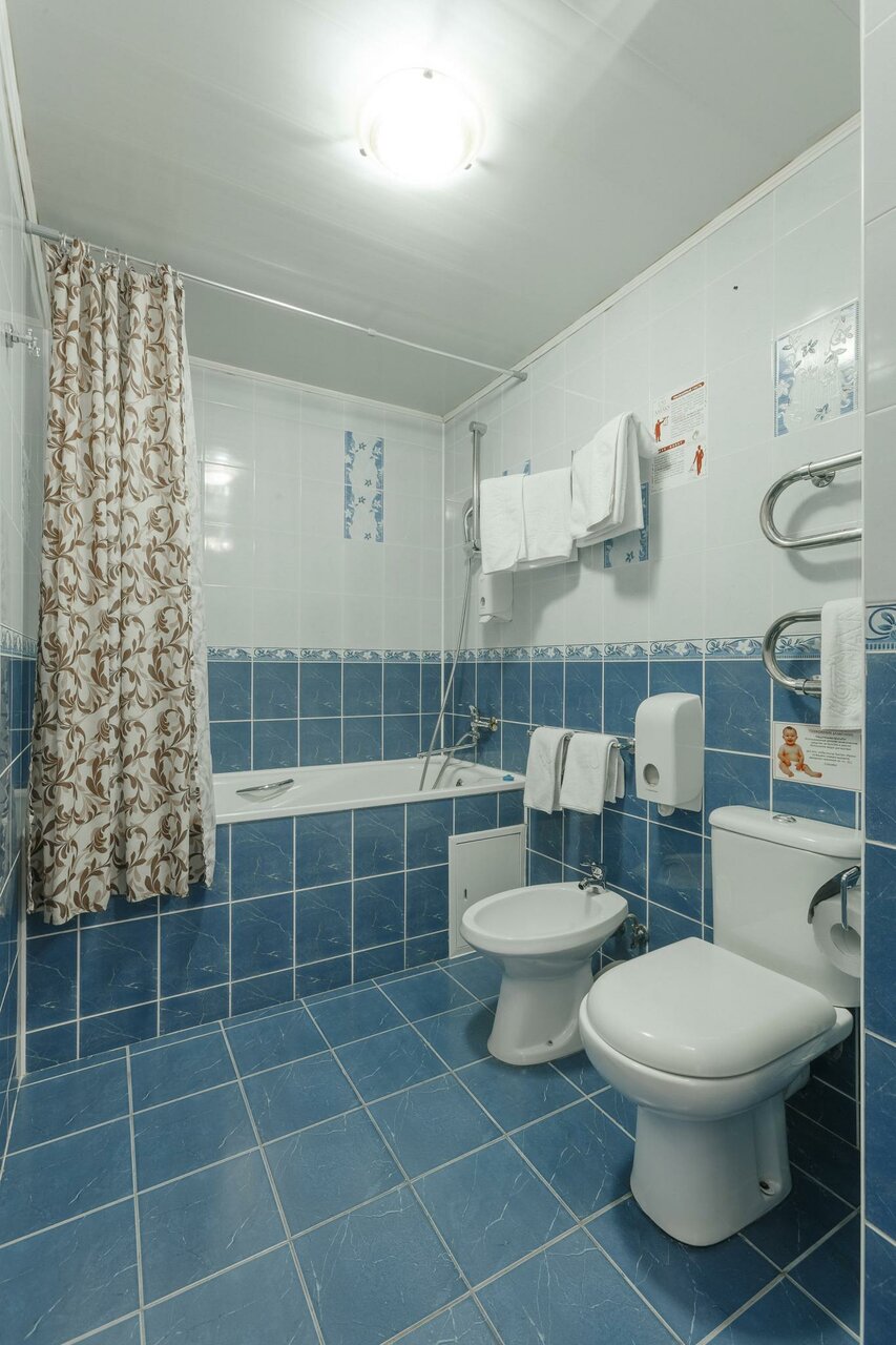 Плюсы: чисто, есть чем заняться вечером (боулинг и бильярд), живая музыка в столовой, приятные женщины в баре. Но: слышимость в номерах просто чудо, за стенкой было слышно как разговаривают люди, причем не слишком громко, это ужас какой то, с таким я еще не сталкивался, спать было невозможно 2. шведский стол на ужин — просто песня! в первый день приезда 23 февраля есть было просто нечего, более-менее съедобной было только размороженная скумбрия, и это, типа, в праздничный день, еще были пирожки с сосиской — внутри оказалась четвертинка сосиски. Позорище!! на след. день исправились. Что то можно было уже выбрать. 3. захожу в душевую кабину, а там нету жидкого мыла, он же шампунь, как заявлено на крышке дозатора. Правда принесли после просьбы достаточно быстро, сумрачная уборщица промолчала на слово ‘Здрасьте’ и с недовольным видом залила жидкое мыло в виде пенки, на шампунь совсем не похоже. Не рекомендую эту гостиницу ни в коем случае.