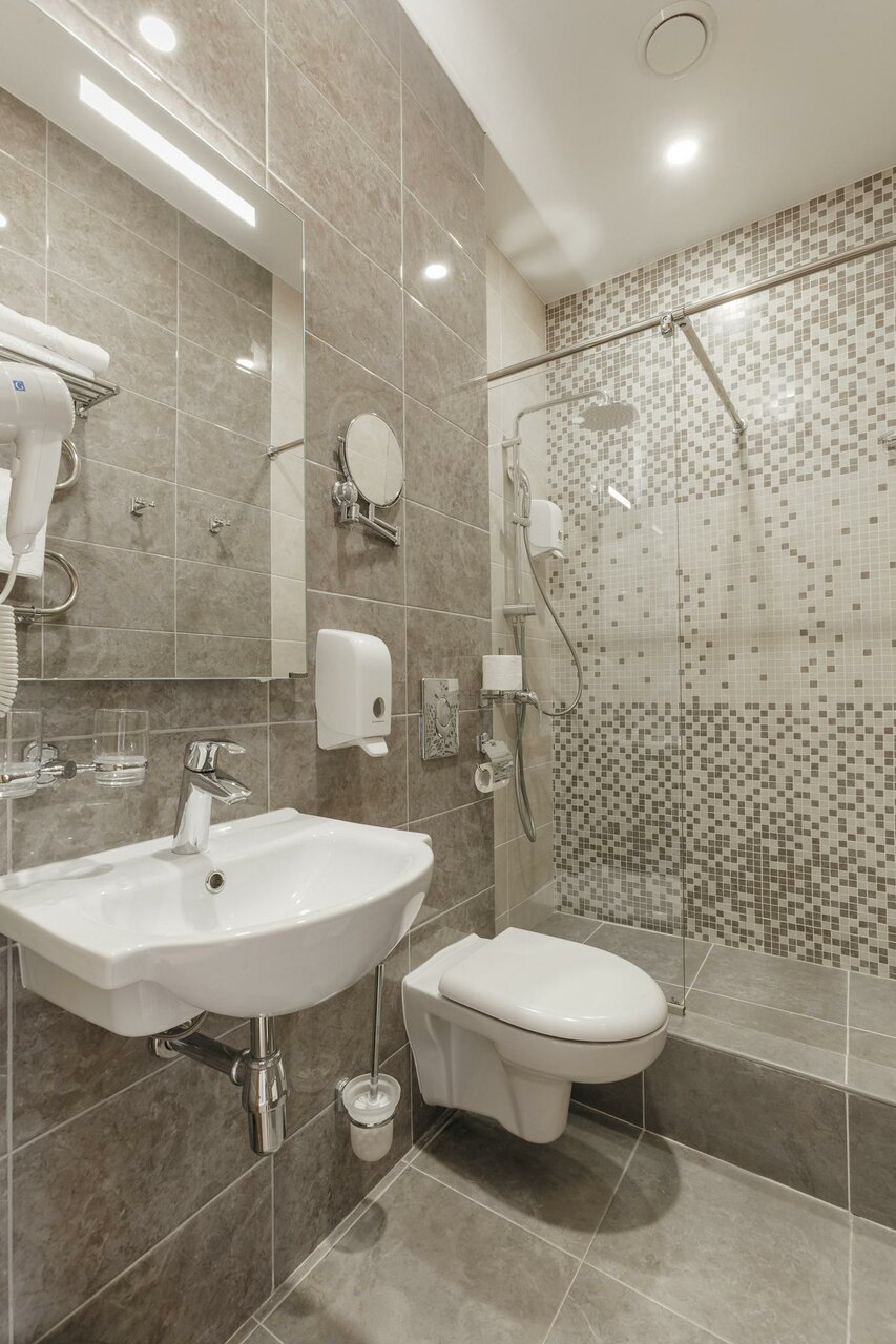 По мне так — классная гостиница, за свою цену, очень даже хорошая, проблемка только в номере, который я выбрала для проживания, но всего одна ночь, поэтому не критично. Номер бюджетный, без окна. Даже одну ночь, я чувствовала себя в нем как в пещере с евроремонтом, да, все в номере есть, и кровати удобные, и холодильник , и чайник с мин.набором (чай,кофе, сахар), 2 бутылочки воды. Душевая чистая, комфортная, правда однор.наборов не было (Щётка, паста), но наклейка есть на стене, что если это надо, то можно обратиться на ресепшн… Завтрак вкусный, выбор большой (фото прилагаю).