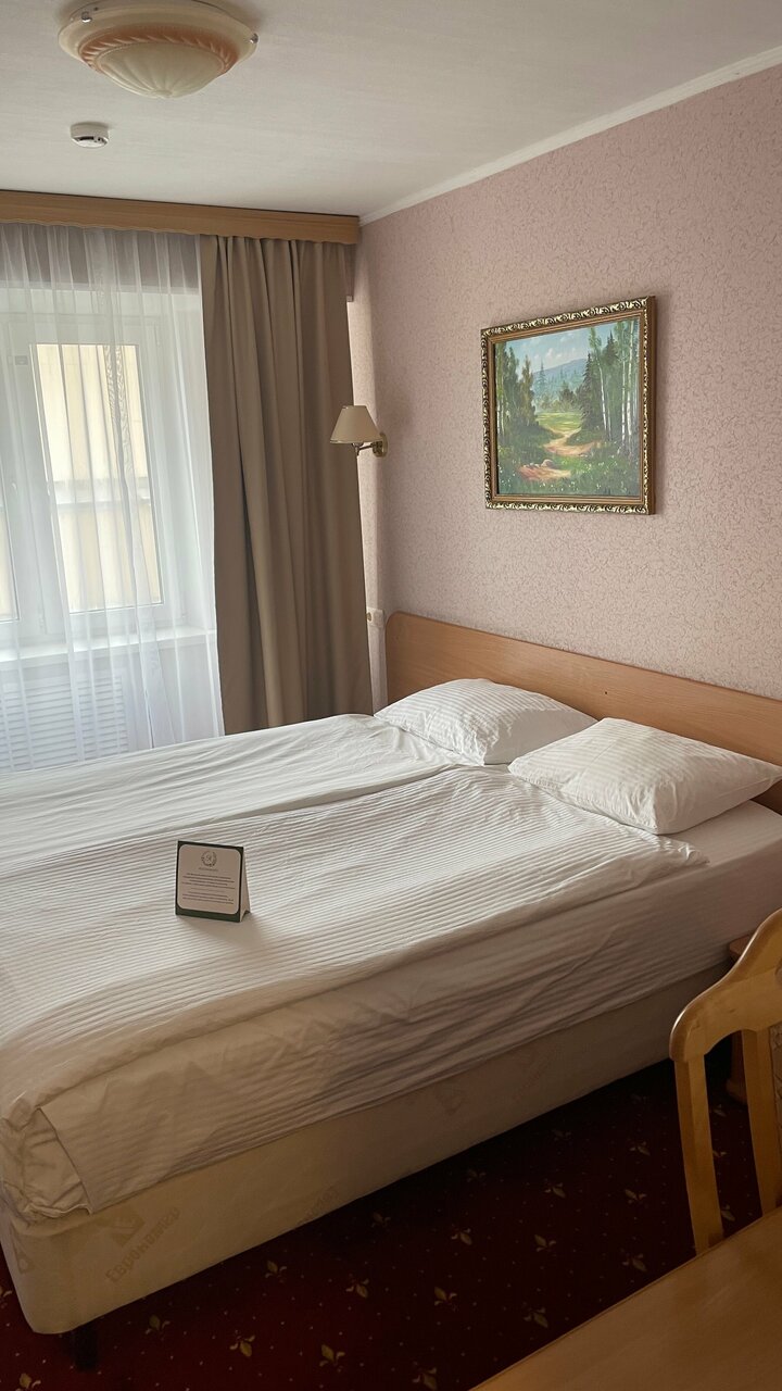 Хорошая городская гостиница! Номера не большие, но все чисто! Полотенца белоснежные, как и постельное белье! Если попросить, то принесут тапки, зубную считку и пасту. Халат платно. Завтраки хорошие, очень вкусная выпечка. Можно попросить приготовить яичницу или омлет.