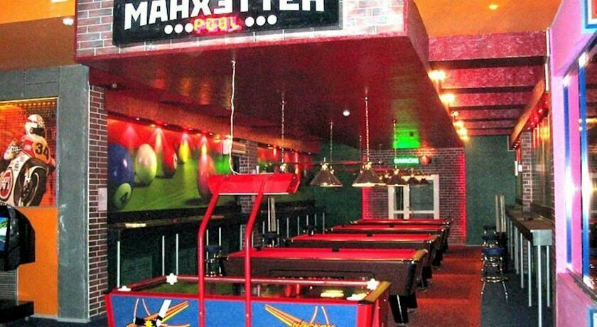 Отдыхали в боулинге. Были 1раз,очень тесно,когда все 3 дорожки играют. Администраторы приветливые и доброжелательные.Есть айрохоккей и автомат с гонками.