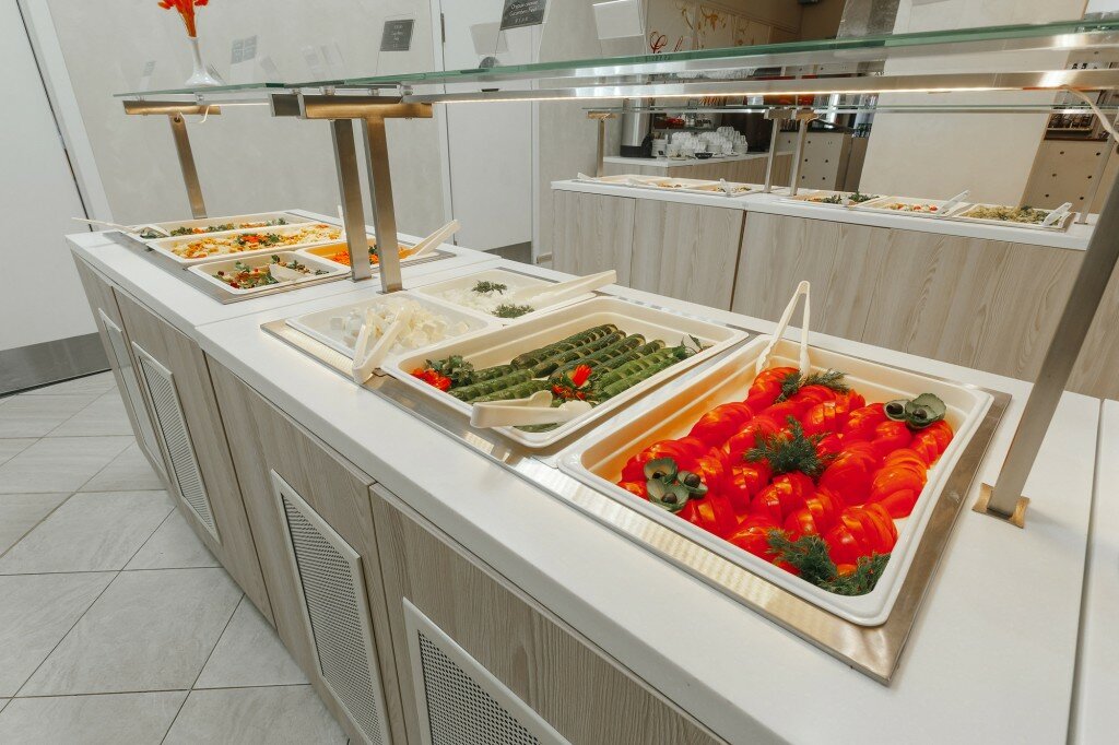 Жили мы номер студия. 30м2. Сам номер вопросов не вызвал. Все устроило. Большой. Просторный. Хороший напор горячей воды. Фен маленький неудобный, но он такой везде в таких гостиницах. Лифт ждать очень долго. Особенно если заселение группы. Но самое страшное — это еда! Мы ужинали в ресторане, уха фирменная по-Владимирски, это невкусная водичка и резиновая рыба. Хрустящие баклажаны в салате никогда не знали ни свежести , ни хруста. Помидоры пластик. Середина июля((( . Ну, и завтраки… такого душевого и маленького выбора, я не видела давно.