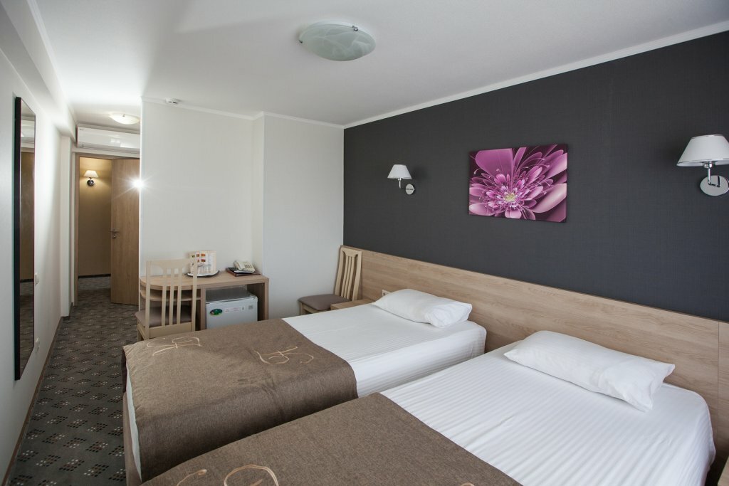 Очень дружелюбная гостиница, даже удивительно что у нее классификация только 3 звезды) Останавливались на одну ночь, студия АМАКС 30 метров, 13 этаж. Достаточно просторный номер, большой телевизор, сейф, кофемашина, чайник — все есть. В номере очень чисто, удобная постель, что для меня очень важно — хороший и продуманный свет (верхний и ночные бра)! В ванной много полотенец, есть все приборы, нет шампуней, гель в диспенсере. В номере есть раскладной диванчик, много окон и зеркал. Бронирование было с завтраком — все было очень вкусно! Большой выбор блюд, хороший кофе и большой ресторан — всем хватало места. Нам все очень понравилось. Кстати заселили нас намного раньше, номер был готов с утра и не пришлось долго ждать) до центра от гостиницы неспешным шагом минут 30. Очень рекомендую!