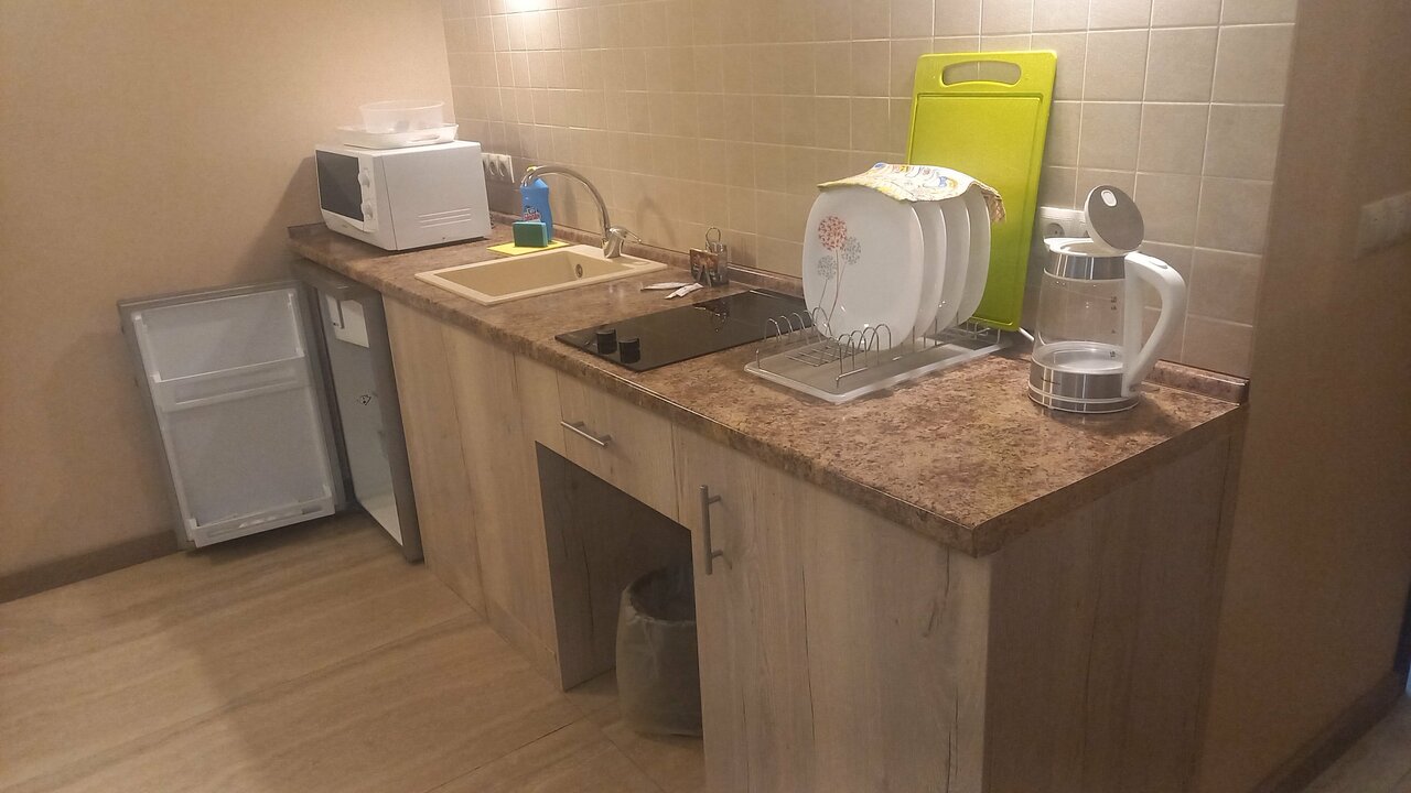 Очень хороший номер, проживали четвером, всё чистое, новое, в номере есть всё для проживания, кухня со всеми принадлежностями, холодильник, цена — качество!