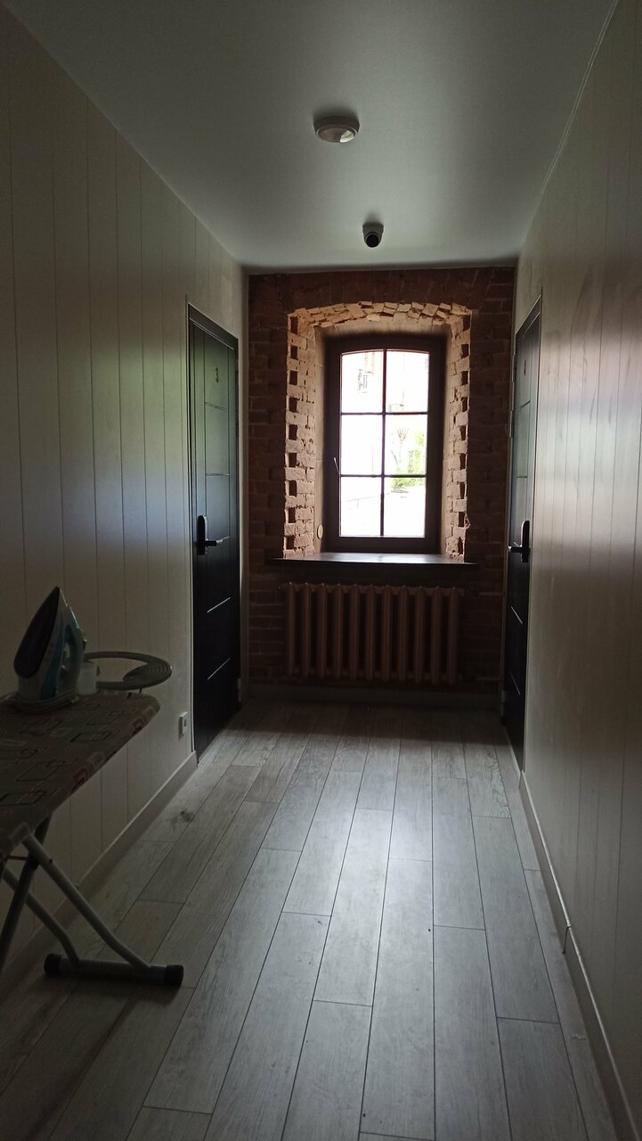 Отель находится в центре истор.части,но при этом в нем очень тихо и спокойно(спали с открытыми окнами).После брони выслали подр. инструкцию бесконтакт.заселения,что оказ. очень удобным!Приехали на своей машине, по инструкции без проблем припарковались во дворе,заселились и пошли гулять.Сам номер компактный,но при этом есть все необходимое.В номере все чисто,белье и полотенца чистые и свежие.В ванной есть все необходимое(жидкое мыло для рук,шампунь,гель-все в бутылях с дозатором, фен, бумага).Тапочки,зуб.щетки и халаты нужны свои.О них и не указано в описании,поэтому мы подготовились.На кухне есть чайник,фильтр для воды (кувшин с картриджем) и все необх из посуды,приятно что были новая губка для посуды и тряпочка для стола.Чай/кофе/сахар нужно взять с собой,если кто-то вечером/утром пожелает выпить в номере. Вх.дверь номера на электрон.замке-очень удобно,что не нужно носить лишние ключи. Все что заявлено в описании номера соотв-т факту.Общее впечатление отличное!Для тур.остановки супер!