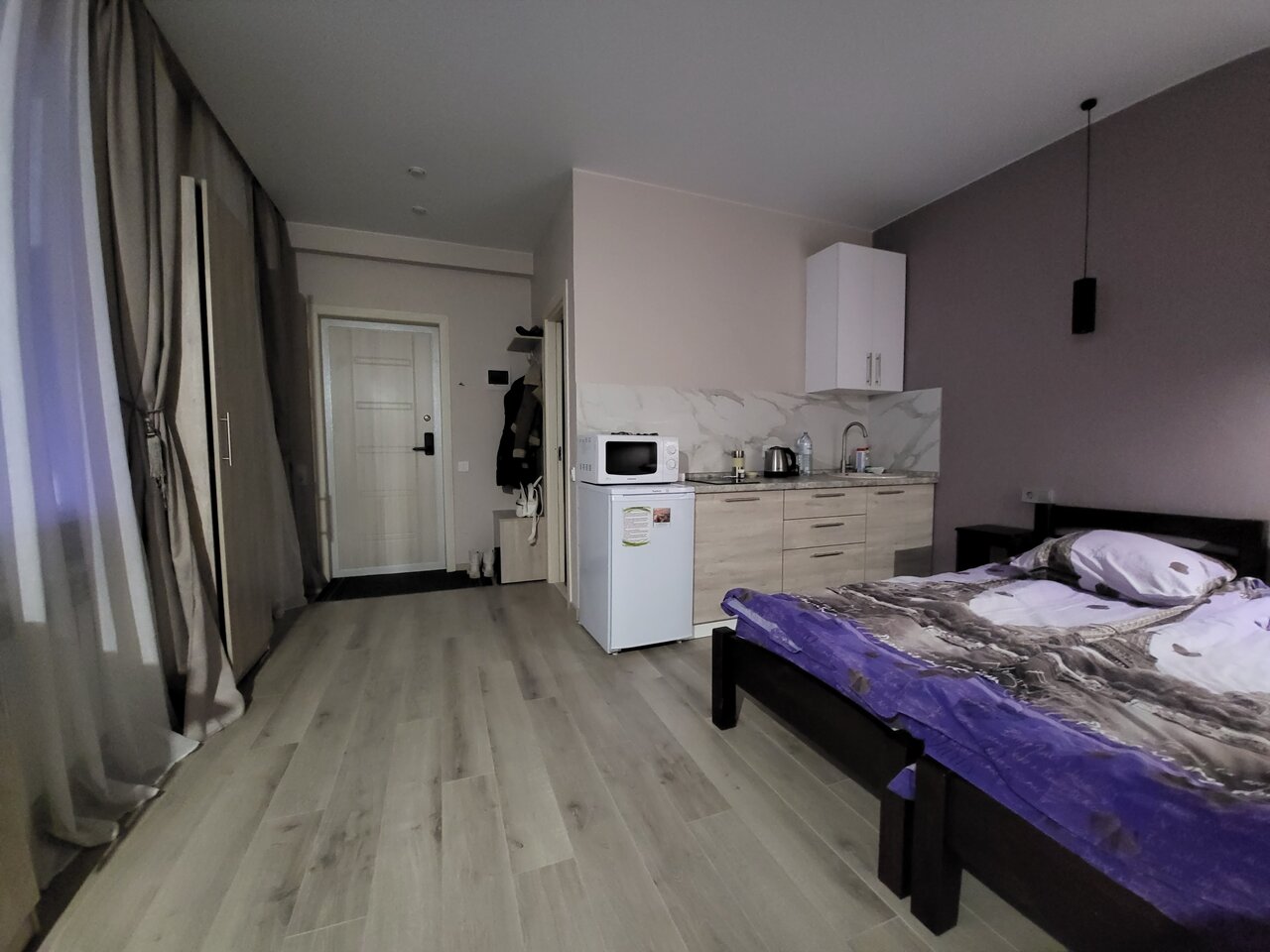 Максимально комфортно, огромный номер с кухней, санузлом и всём необходимым. Удобное расположение. Новый уровень сервиса, никакого лишнего и ненужного общения.