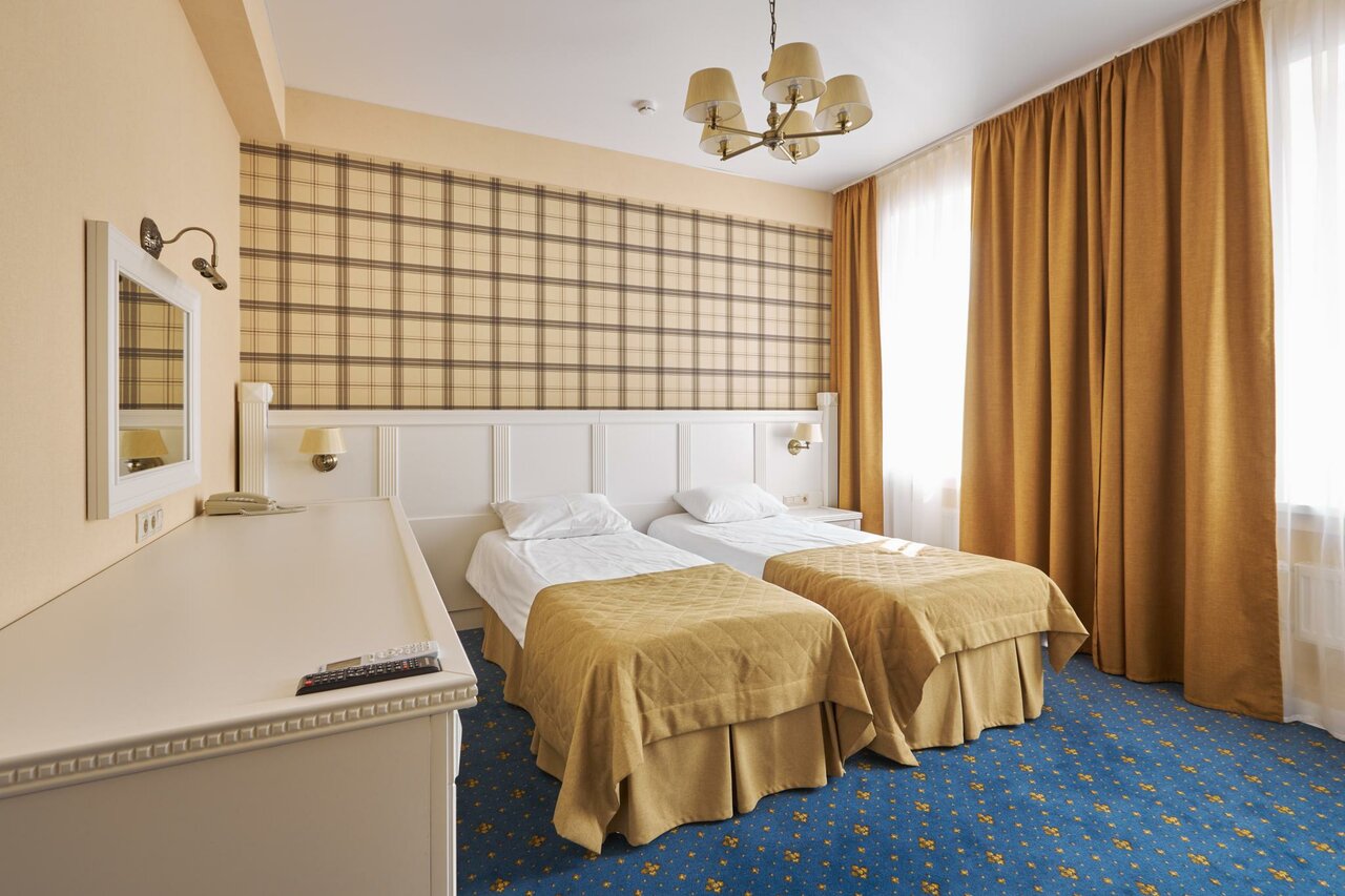 Гостиница понравилась. Номера просторные, кровать удобная, есть все необходимые принадлежности в ванной, везде чисто. Можно в любое время выпить чай или кофе. Впервые столкнулись с такой услугой, как супчик дня — в обед в кафе ставят суп, которым при желании можно пообедать (бесплатно), к нему гренки, хлеб. Мы попробовали из интереса, вкусно. Персонал доброжелательный. 2 остановки на автобусе до центра (пешком ленились ходить), остановка в 2-х шагах от гостиницы.