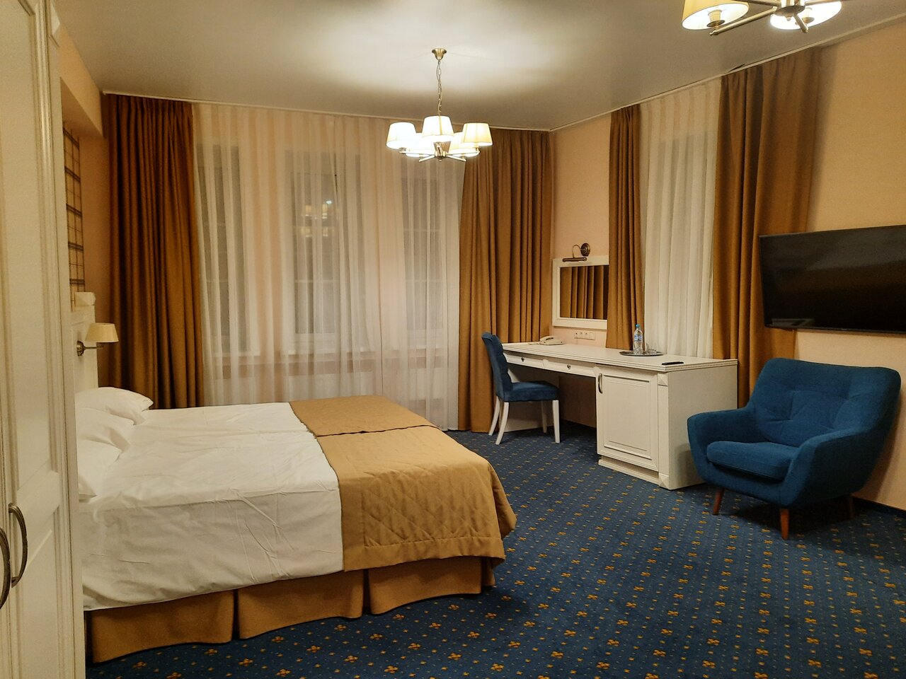 Замечательный отель! Красивый, уютный интерьер, прекрасный приветливый персонал, просторные номера! Уборка в номере каждый день. Сантехника, мебель, телевизор — все на 5+. Завтраки и ужины достойные, не ресторан, но все очень вкусно и выбор есть всегда! А самое главное все достопримечательности в пешей доступности! Мы остались очень довольны! Спасибо!