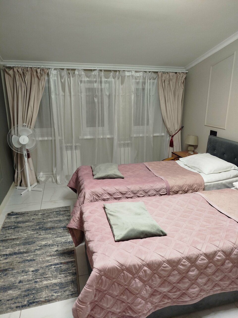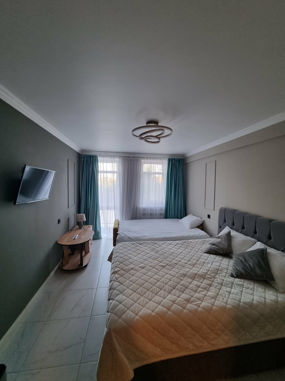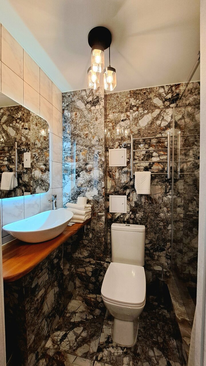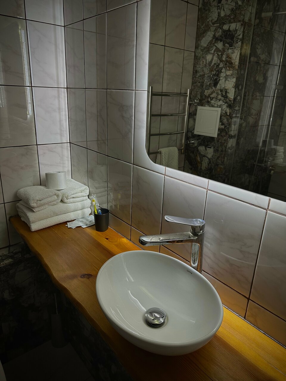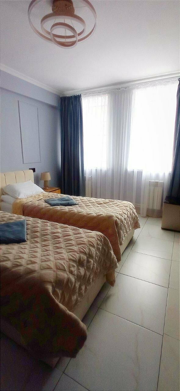Хотелось поставить 4 звезды, при этом, в сравнении с другими местами это может быть несправедливо По большей части все было отлично. Чисто, места в номере достаточно. Очень крутая раковина в ванной) подсветка зеркала тоже. Из минусов — пол из кафеля. Положите хотя бы коврики около кроватей. Чтоб босиком можно было встать. Из-за этого сейчас не уютно. Также не фиксировалась в закрытом состоянии дверь в туалет, на замок не закрывалась и нужно было держать — почините. Первый номер справа на третьем этаже.