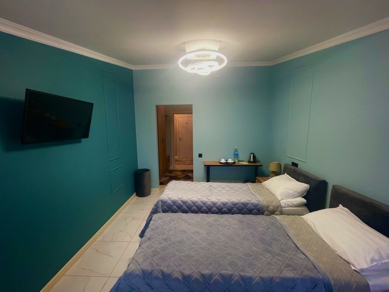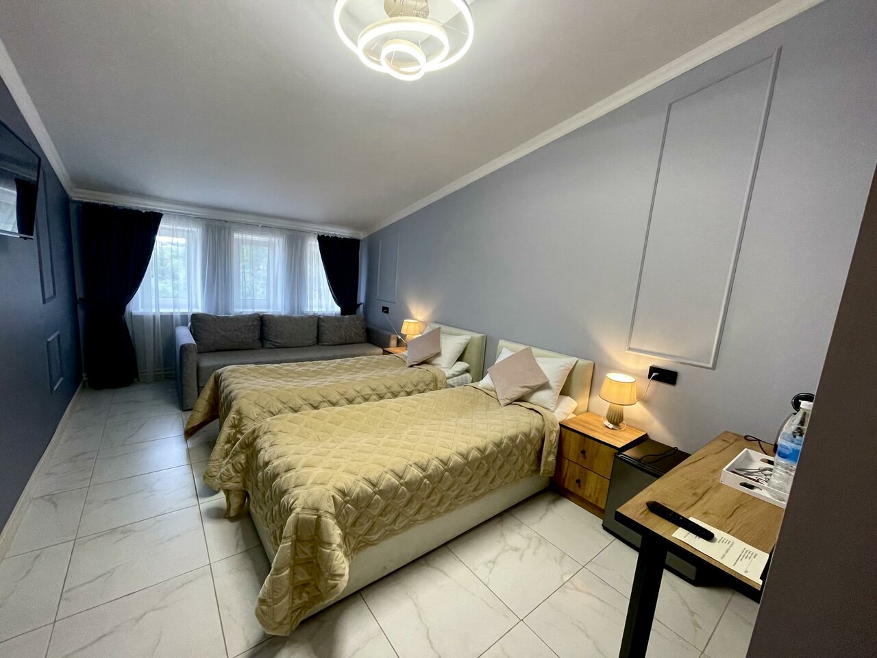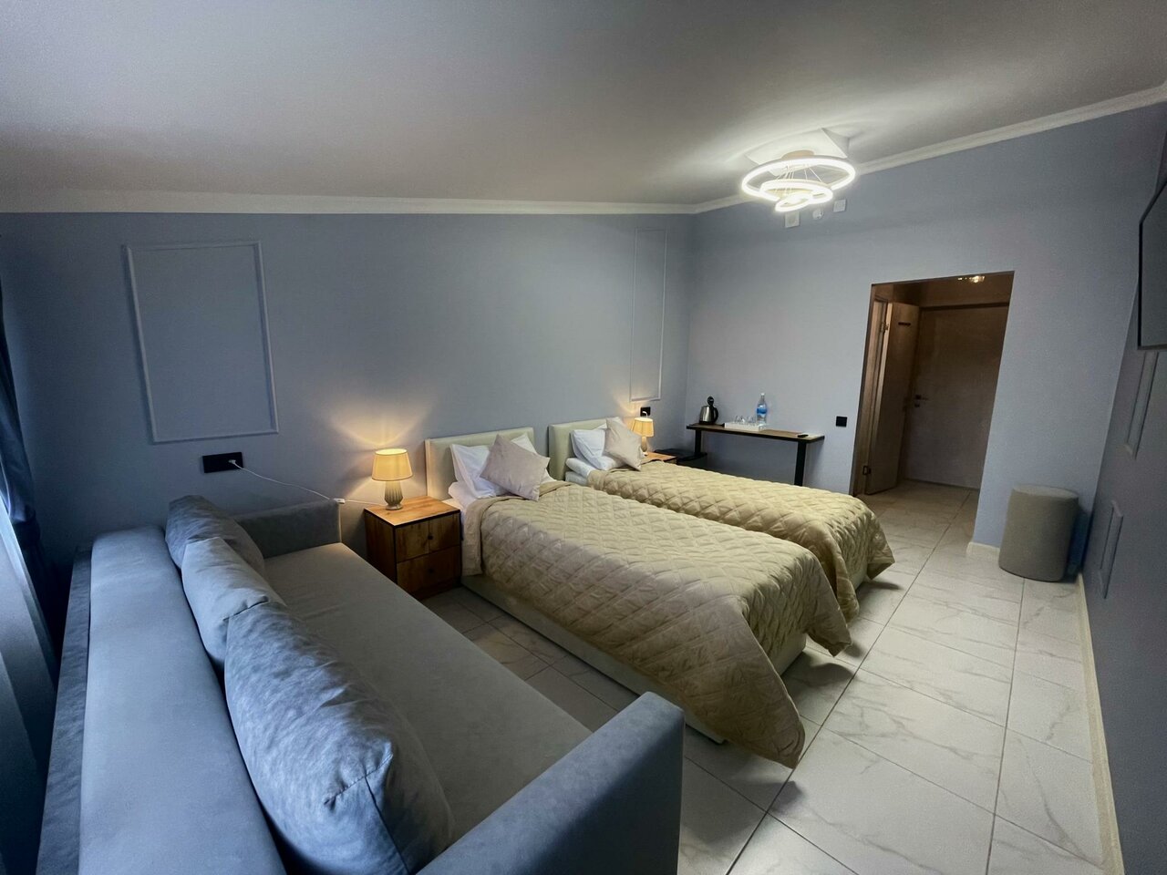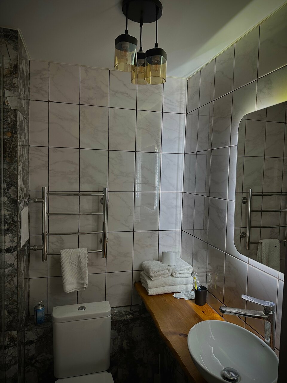 Хотелось поставить 4 звезды, при этом, в сравнении с другими местами это может быть несправедливо По большей части все было отлично. Чисто, места в номере достаточно. Очень крутая раковина в ванной) подсветка зеркала тоже. Из минусов — пол из кафеля. Положите хотя бы коврики около кроватей. Чтоб босиком можно было встать. Из-за этого сейчас не уютно. Также не фиксировалась в закрытом состоянии дверь в туалет, на замок не закрывалась и нужно было держать — почините. Первый номер справа на третьем этаже.