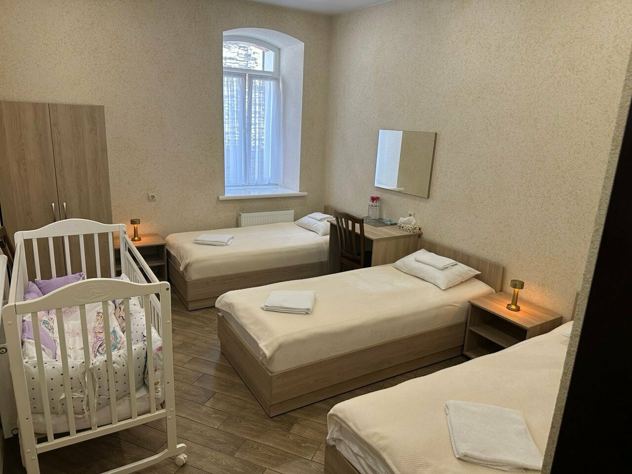 Отличная гостиница, по недорогой цене в центре города. Номера с очень свежим качественным ремонтом. Чистота, исправность, все на высшем уровне. Кухня с холодильником и всем необходимым общая. Номера не просторные, но очень добротные. Отсутствие кондиционера и телевизора нисколько не напрягает. Санузел качественный, приятный, чистый, есть все необходимое ( в том числе розетка и фен). Путешественникам на авто с парковкой немного не комфортно, авто придётся припарковать без прямого визуального контакта. Твёрдая 5. В следующий раз даже не будем искать других вариантов.