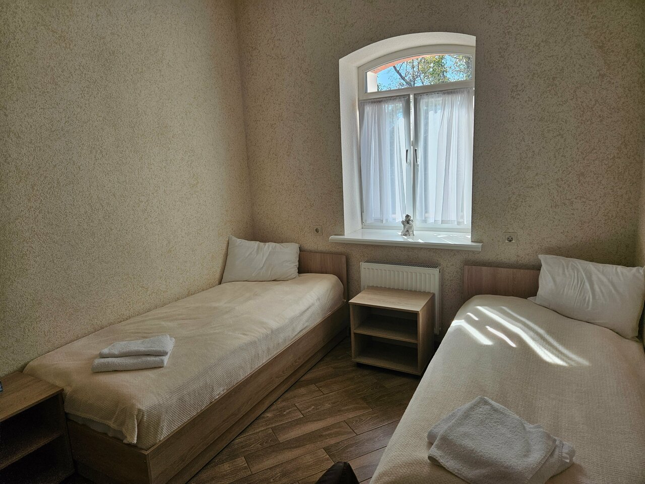 Замечательная гостиница! Сочетает в себе почти несочетаемое: центр города и тихое расположение. Если хотите выспаться, то вам сюда)) Номера простые, современные и очень чистые. По состоянию ремонта и санузлов кажется, что гостиница открылась пару месяцев назад. Все очень свежо. Кондиционера нет, но он и не нужен. Здание старинное, с очень толстыми стенами. Летом прохладно. Зимой тепло. Останавливались тут и в июльскую жару и холодной поздней осенью. Было комфортно. Отдельная кухня, где каждый готовит себе сам — большой плюс для тех, кто на специальном питании и не может ходить в общепит. Рекомендую это место своим друзьям и родственникам.