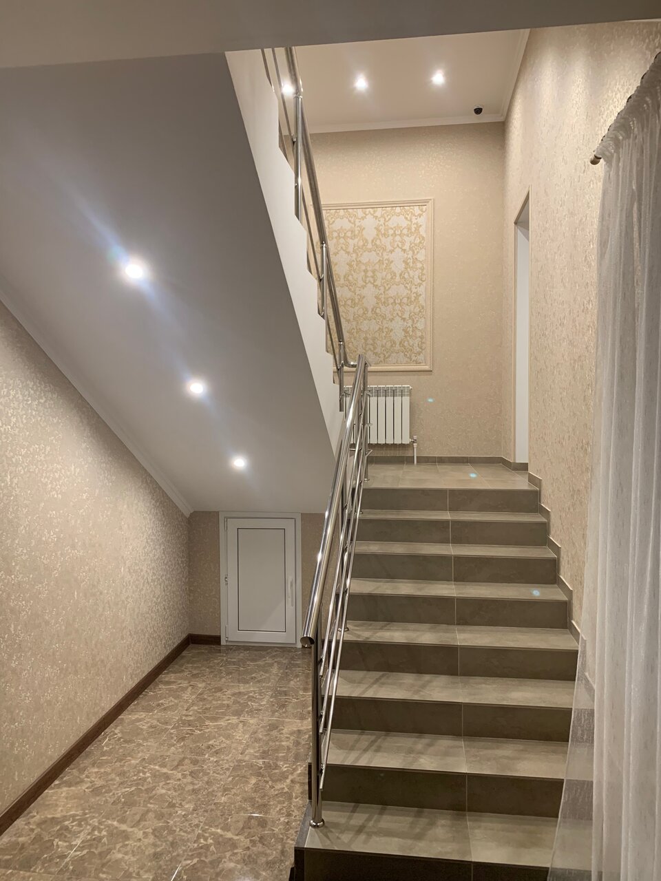 Хорошая приятная гостиница, чистая, свежий ремонт, в низу кухня, есть всё необходимое, чайник, микроволновка, посудомойка, 5 комнат, в номере на каждого есть полотенце, щётка, шампунь и зубная паста. Хозяин приятный, в доме есть камеры, но только на кухне и на лестнице, но это не напрягает.