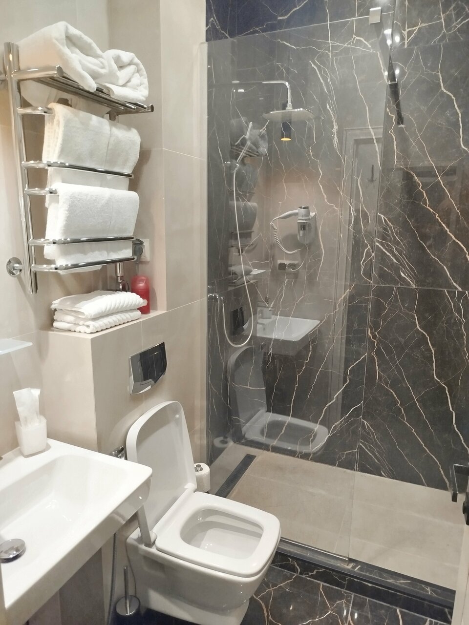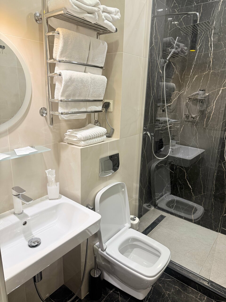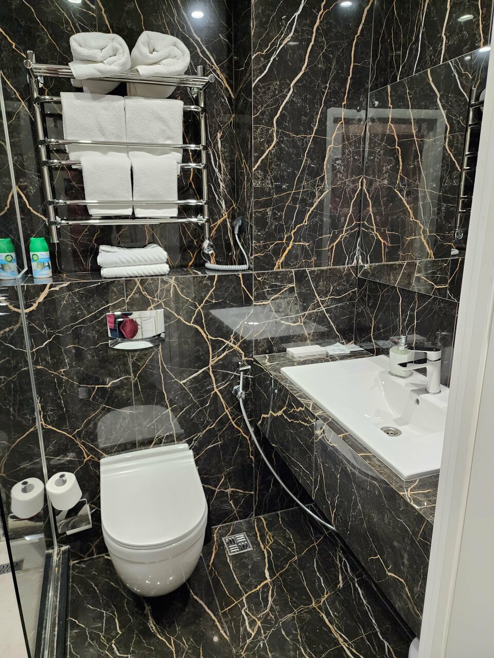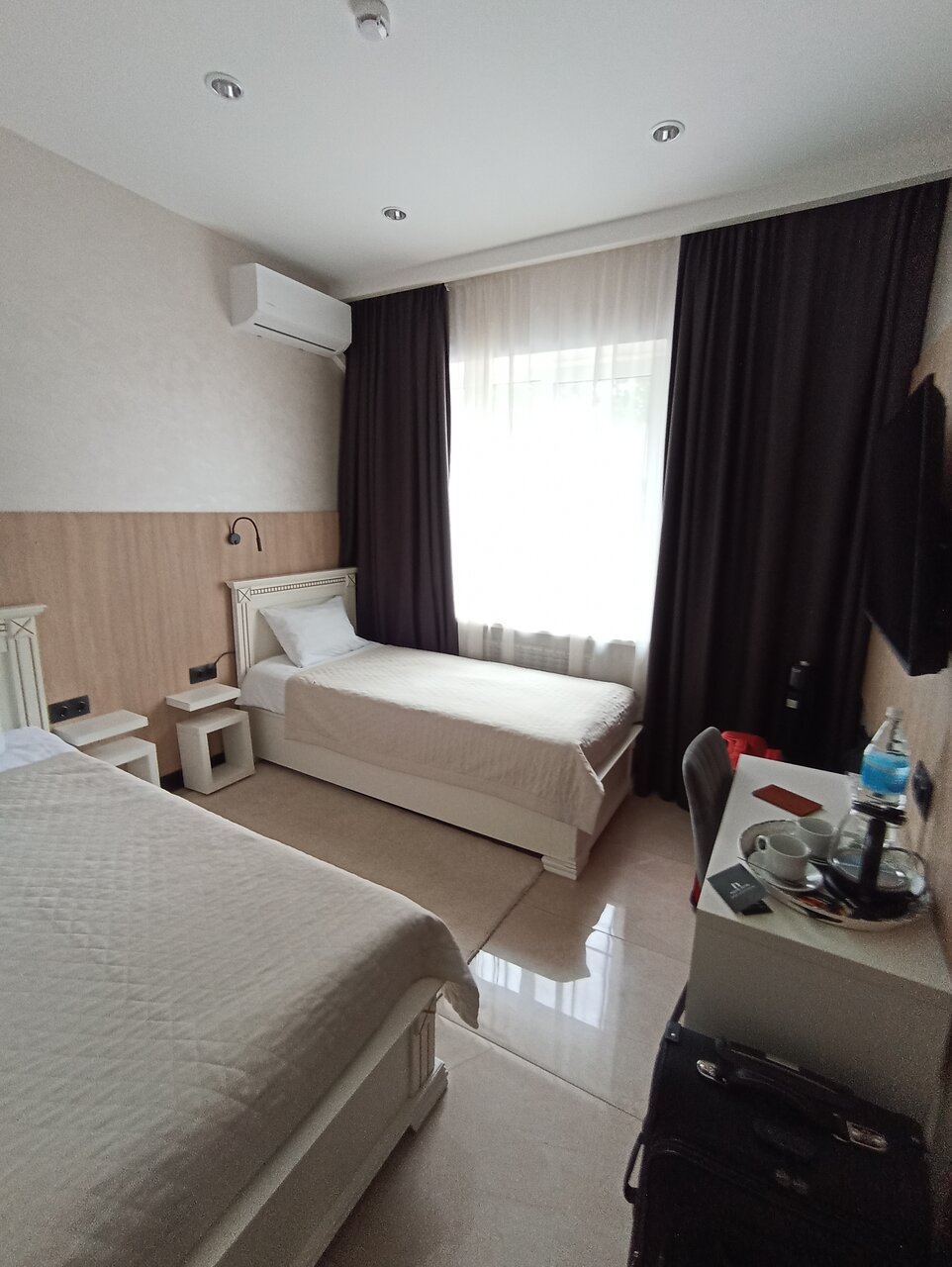 Отель очень понравился,чисто,современно.Номер на троих,небольшой,компактный.В номере халаты,тапочки,наборы для душа,холодильник,кондиционер.Завтрак на выбор из4 вариантов,все вкусно. Обслуживание отличное.