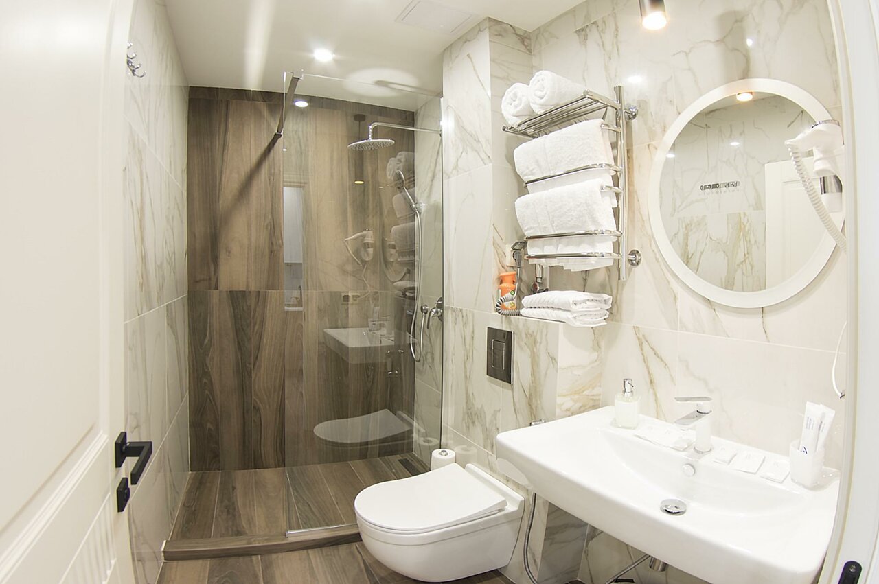 Сняли номер на одну ночь, чтобы отдохнуть во время дальней поездки. Удобная кровать, матрас отличный, после длительной пешей прогулки по Суздалю и Владимиру спалось замечательно. Окна, хоть и выходят на проезжую часть, шума не пропускают. Плотные шторы свет не пропускают от слова совсем. Санузел современный, просторная душевая, где будет удобно человеку любой комплекции. Отель в пяти минутах ходьбы от городского парка. До основных достопримечательностей Владимира 30 минут неспешной ходьбы по тихим улочкам.