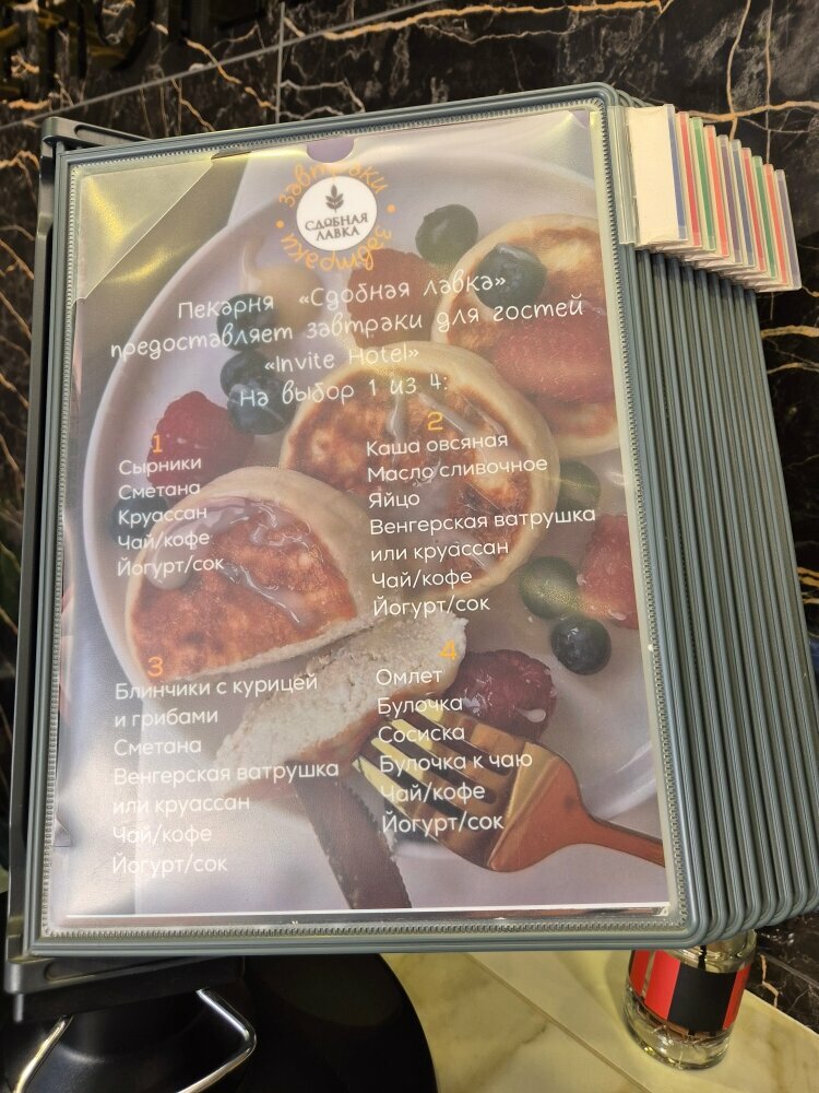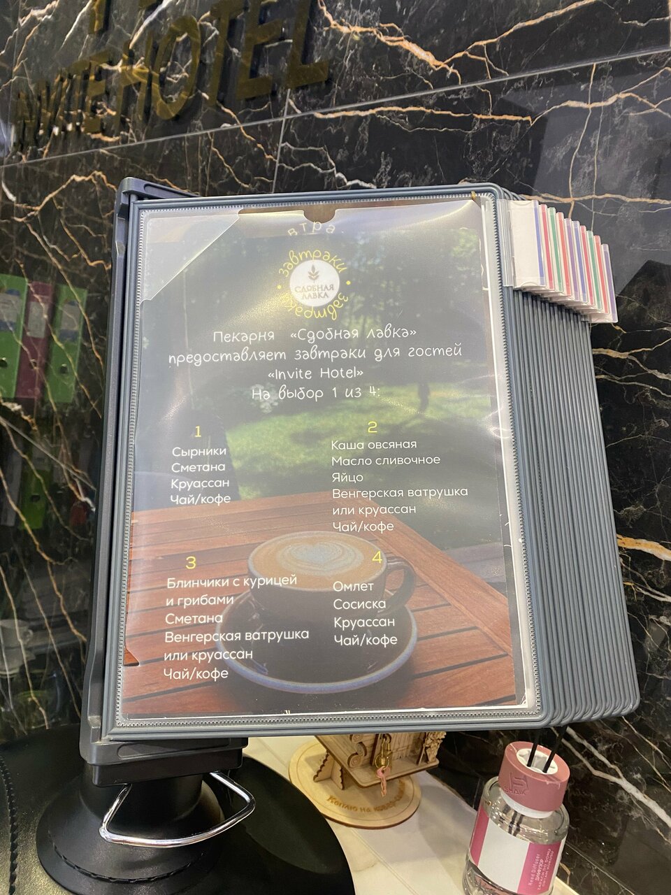 Отличный ремонт в здании. Номера чистые, комфортные. Есть всё необходимое: фен, полотенца, тапочки, негазированная вода, чай, чайник, зубная щётка, мыло, гель для душа и шампунь. Рекомендую делать бронь с завтраком, стоит немного дороже, но избавит от утренних поисков кафе. В пекарне при отеле 4 вида завтраков на выбор, сытно и вкусно. Отель удобно расположен, заблудиться трудно. Дополнительно хочу отметить приветливость и вежливость персонала. Если ещё раз соберёмся посетить г. Владимир, то искать отель долго не придётся, есть Invite Hotel!