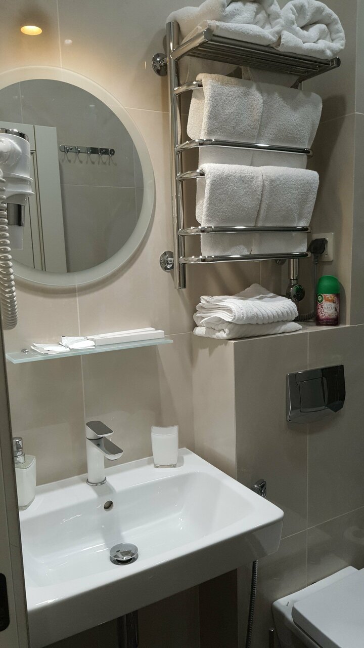 Номер чистый, всё есть, что должно быть в 3*. Персонал на ресепшен очень доброжелательный и приветливый. Но для меня один минус: номер очень маленький. До центра пешком минут 20.