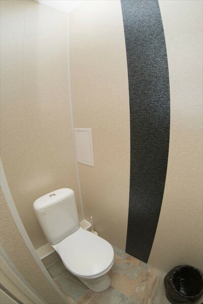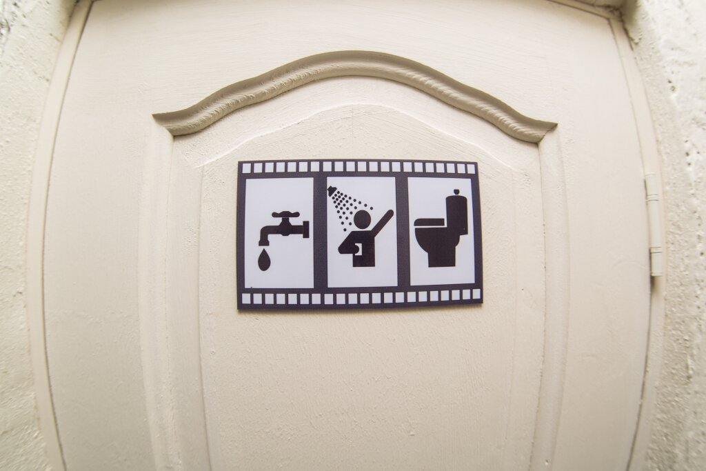 ‘+’ тематическое оформление. ’+’ в банные принадлежности на человека входят 2 полотенца, тапочки, гель для душа и шампунь. ’-‘ нет полотенцесушителя, нет фена, вентиляции в туалетной комнате; в душевой расшатано крепление — того и глядишь упадет — надо бы следить за состоянием (( ’-‘ запах от полотенец…по-видимому, в заведении негде нормально высушить