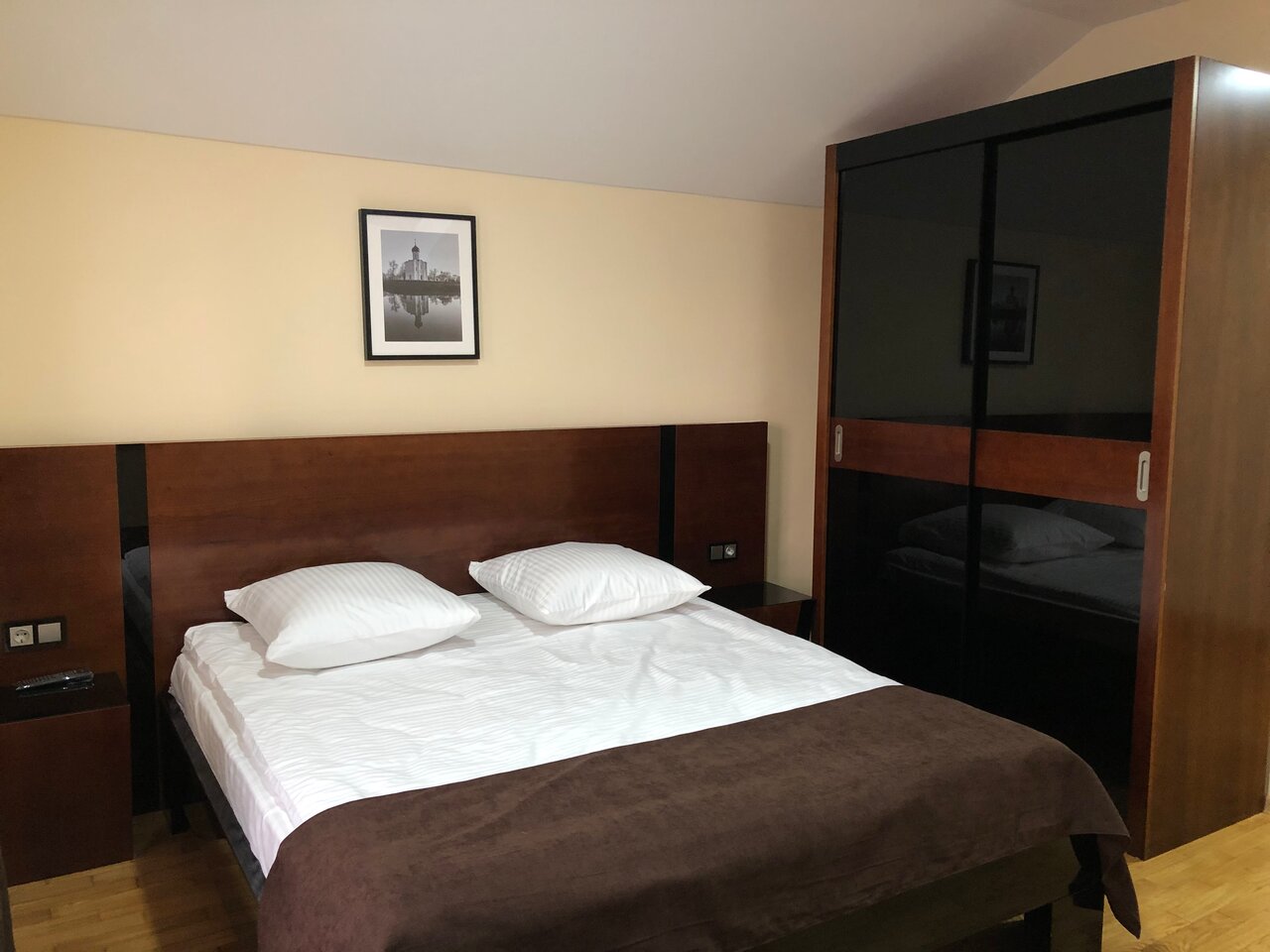 Отличный отель по доступной цене в 5 минутах ходьбы от Соборной площади. Останавливались в двухместном номере на мансардном этаже. В номере сан.узел, душ, кровать, шкаф, предоставляется набор полотенец.