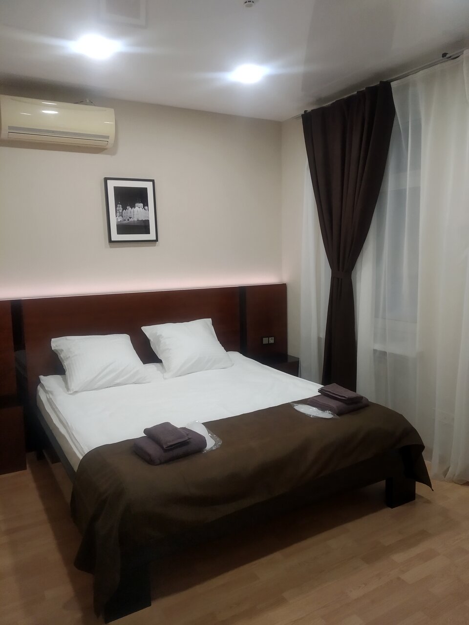 Проживал в номере в августе 2022 г. Для гостевого дома ценник дороговат, сравнивая с такими же номерами в других городах. Заселились без проблем вечером, оплатив номер в первой половине дня. В номере минимум необходимых вещей: кровать, шкаф, телевизор, кондиционер, прикроватные тумбочки, которые трудно назвать тумбочками, т.к. в них нет ни полочек, ни ящиков. Одна секция шкафа не закрывалась. Приличный туалет, но немного не доделан: отсутствовали решетка вытяжки и полотенцесушитель. Для простого обывателя номер неплох. Самое неприятное произошло при незапланированном выезде. Оформили все по инструкции, заранее, но денег за последний день так до сих пор и не получили, хотя нам обещали это сделать. Имейте ввиду, что в случае форс-мажорных обстоятельств Вы тоже можете потерять свои деньги!