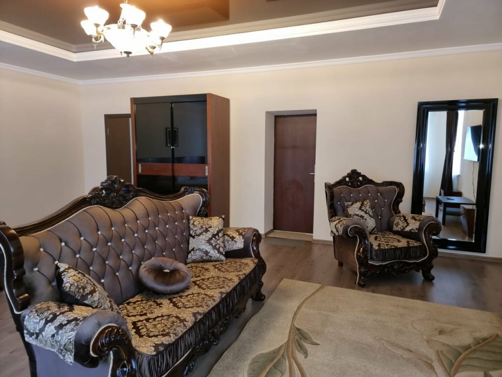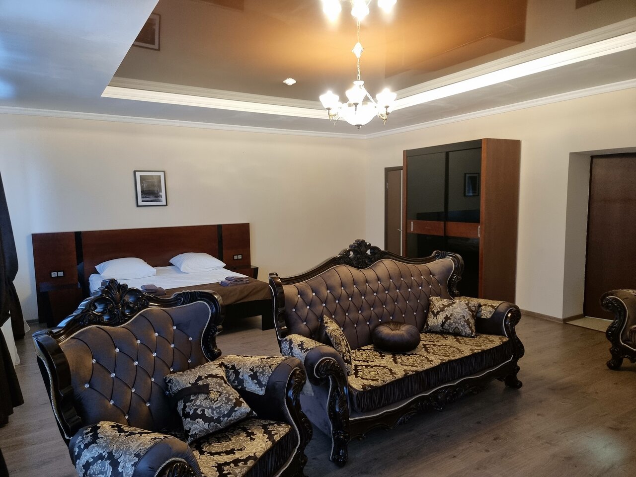 Останавливались в номере ‘Люкс’, сам номер достаточно не плохой, просторный, выглядит солидно, из минусов: в душе сломана дверца, на просьбу починить — ответили нет инструментов, в номере холодно, и теплее сделать нельзя, так что по номеру нужно ходить в тёплой одежде, элементарно нет стаканов, попросили, дали пластиковые стаканчики, нет одноразовых зубных щёток и пасты, также нет стульев, так что если захотите поесть в номере, придётся двигать маленький столик к дивану или креслам, или наоборот. Вообщем пойдёт на 1-2 ночи