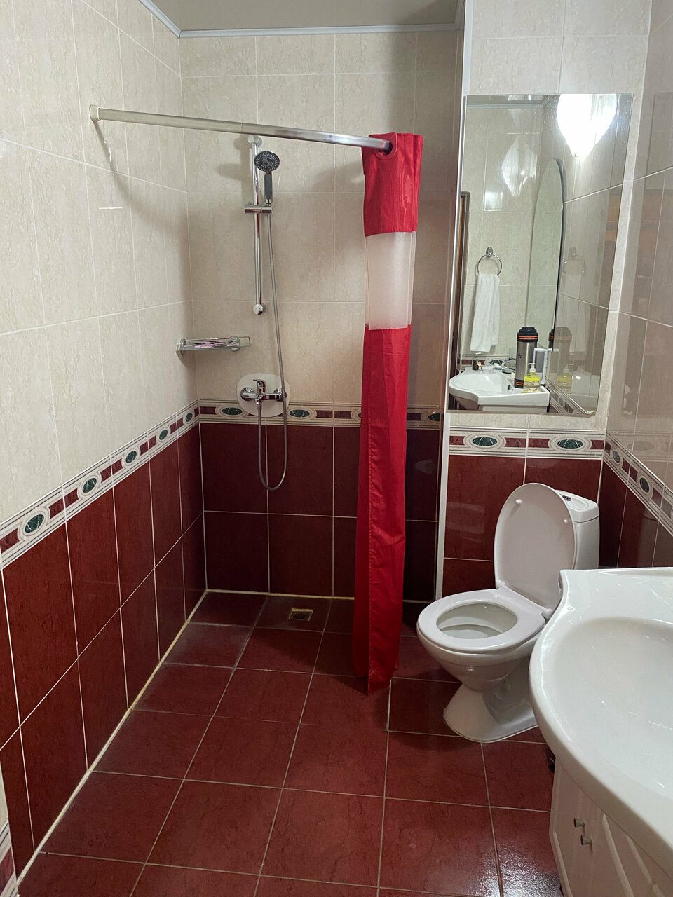Номера чистые, есть одноразовые тапочки, еда шикарная, номера на крыше, подниматься удобно, но можно порезаться об перила (скорее всего это моя неаккуратность, поэтому можете не переживать), в номере чисто, на этаже есть кулер, оба режима работают. Своя ванная с ДУШЕМ, (НЕ КАБИНКОЙ/ВАННОЙ). Не понравилось ещё только то, что кран старый и напор слабый, а так в целом без ванны все 5 звезд
