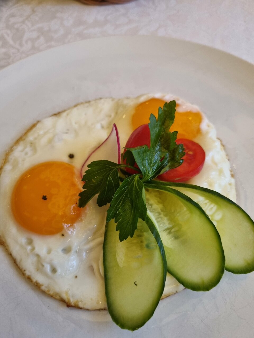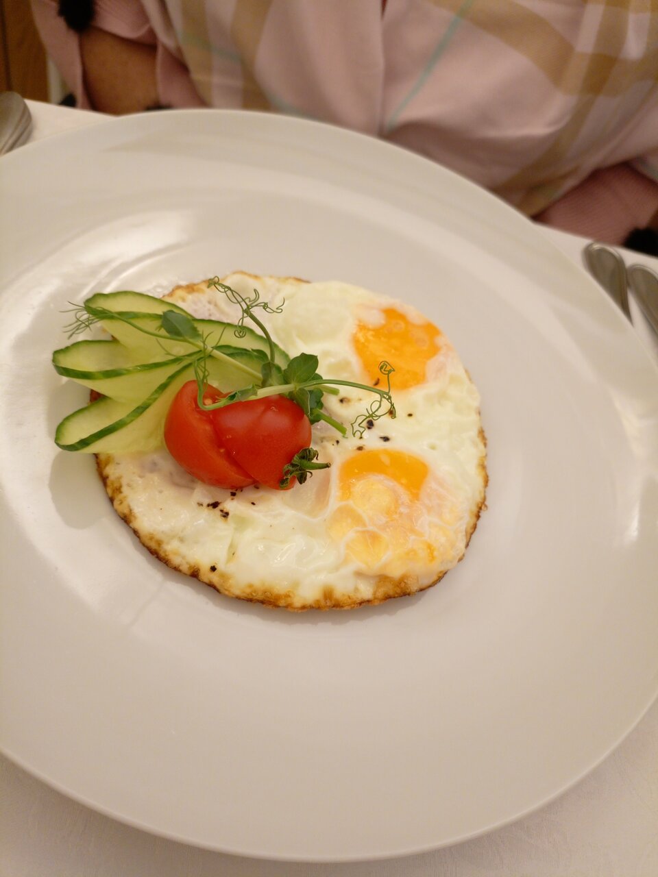 Отличное расположение, очень приятный и вежливый персонал. Отдельно порадовала опция размещения с небольшой собакой. Немного маловат зал для завтраков, пришлось ждать свободного столика, но официант любезно проводил на откртую террасу, где принял заказ и мы вернулись в зал к накрытому столу.