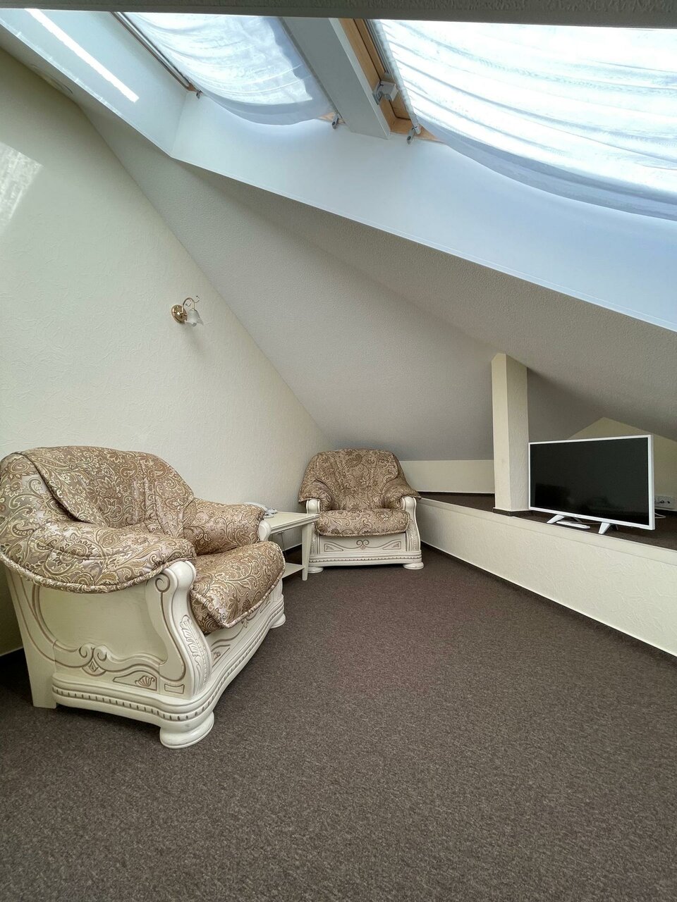 Потрясающий вид из окон мансардные номера. Очень вежливый и добродушный администратор! Ей отдельное спасибо за приятное общение)