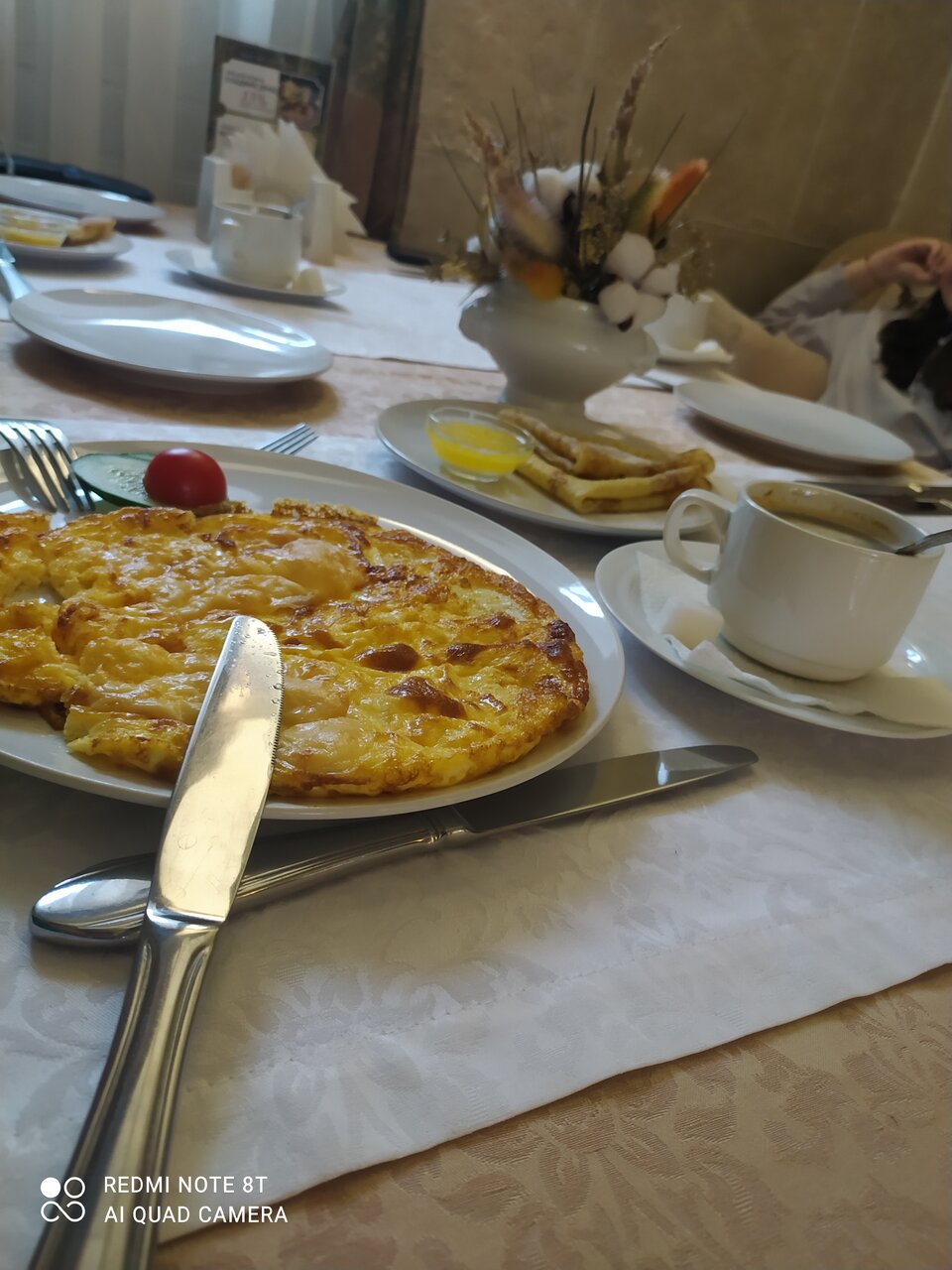 Чистый уютный маленький отель на тихой улочке в самом центре города. Сытный завтрак по меню: пельмени, каши, омлет/яичница, сырники/блины, салаты, йогурты и прочее. На завтрак дают талон на 300₽( сентябрь 2024): примерно, это каша рисовая, яичница с ветчиной, 2 блинчика со сгущенкой и чай. Если сумма заказанного на завтрак будет больше 300₽, нужно доплатить разницу, но мне хватило Номер очень чистый, халат нормального мужского размера, сантехника работала без проблем, туалетные принадлежности предоставляются. В нашем номере был холодильник литров на 100, чайник с чайной парой и всем необходимым. Матрас удобный, одеялко теплое, комары , видимо, поедали соседей и к нам не долетали. Соседей не слышал совсем, звукоизоляция норм или просто повезло. Из минусов: ресторан закрылся часов в 9 вечера. Хорошо бы для любителей ночного зажора установить на ресепшен автомат по продаже шоколадок, чипсов, каких-либо снеков и кофе.