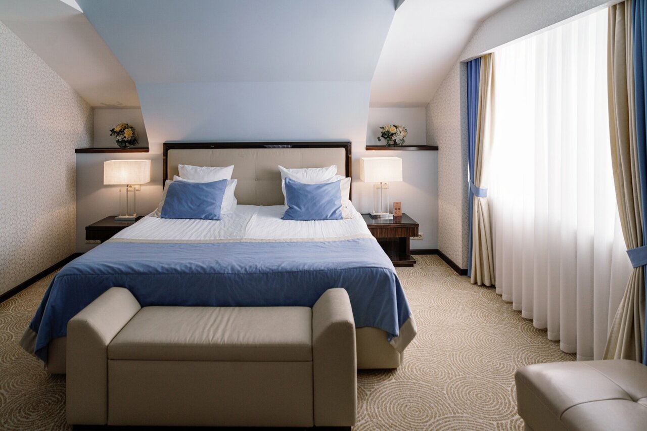 Гостиница расположена в пешей доступности от центра города, рядом много кафе и ресторанов. Номер чистый, уютный, оснащен всем необходимым. Есть парковка для автомобилей. Гостям предлагают посетить бассейн, где можно сделать массаж у квалифицированных специалистов. Завтраки вкусные и сытные. С удовольствием вернусь сюда и всем рекомендую.