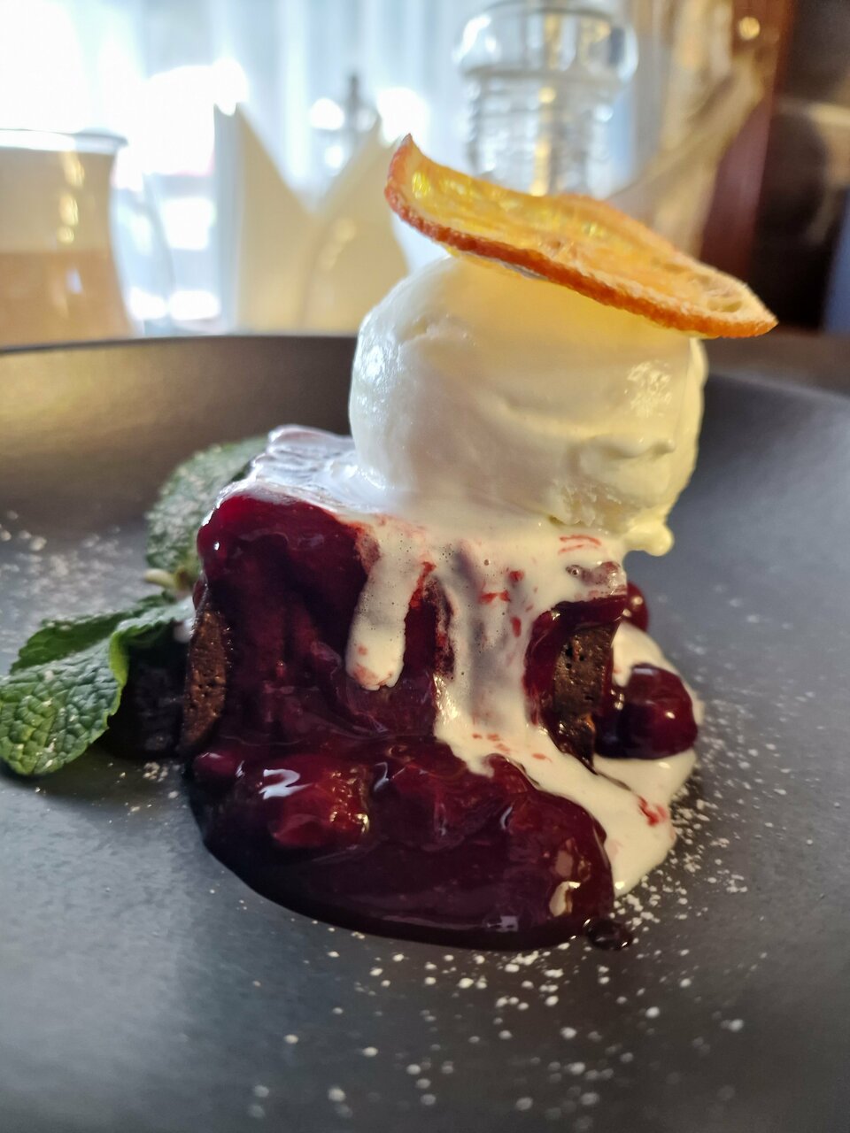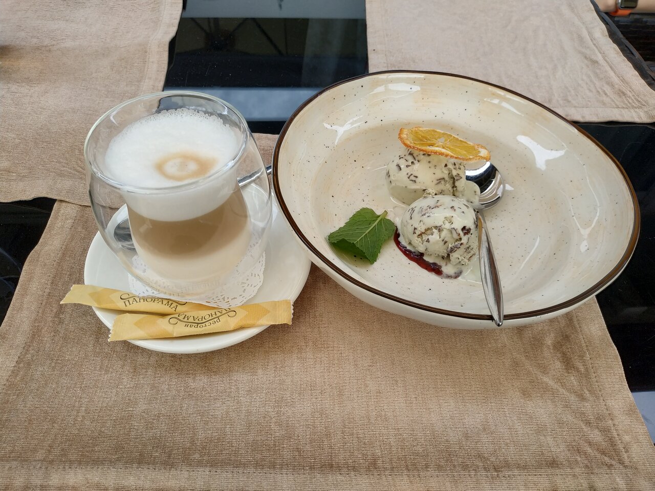 Еда вкусная, отличный вид. Немного старомодный интерьер, но даже приколно