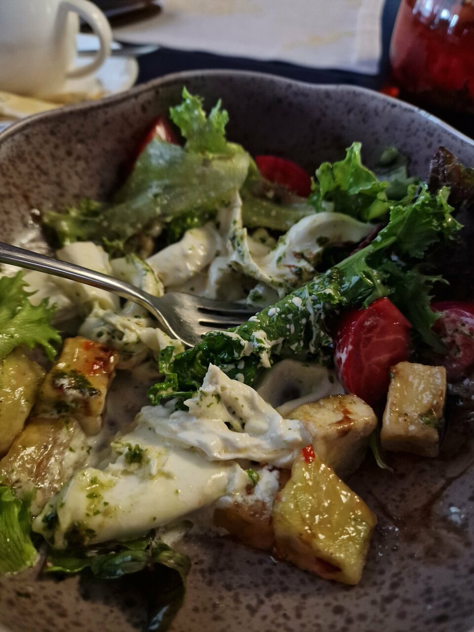 Очень приятный ресторан, отличное обслуживание. Еда — на 4. Салат Цезарь был вкусный, но пресный. Очень порадовала ненавязчивая живая музыка.