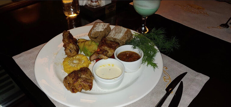 Еда очень вкусная, заказывали много разного, так как отмечали День рождения в большой компании. Делились друг с другом разными блюдами. Салаты свежие. Канапе с селёдкой и скоблянка — прелесть ! Персонал очень дружелюбный, обстановка комфортная, на парковке свободно. В залах чистота и красота. Очень понравилось.