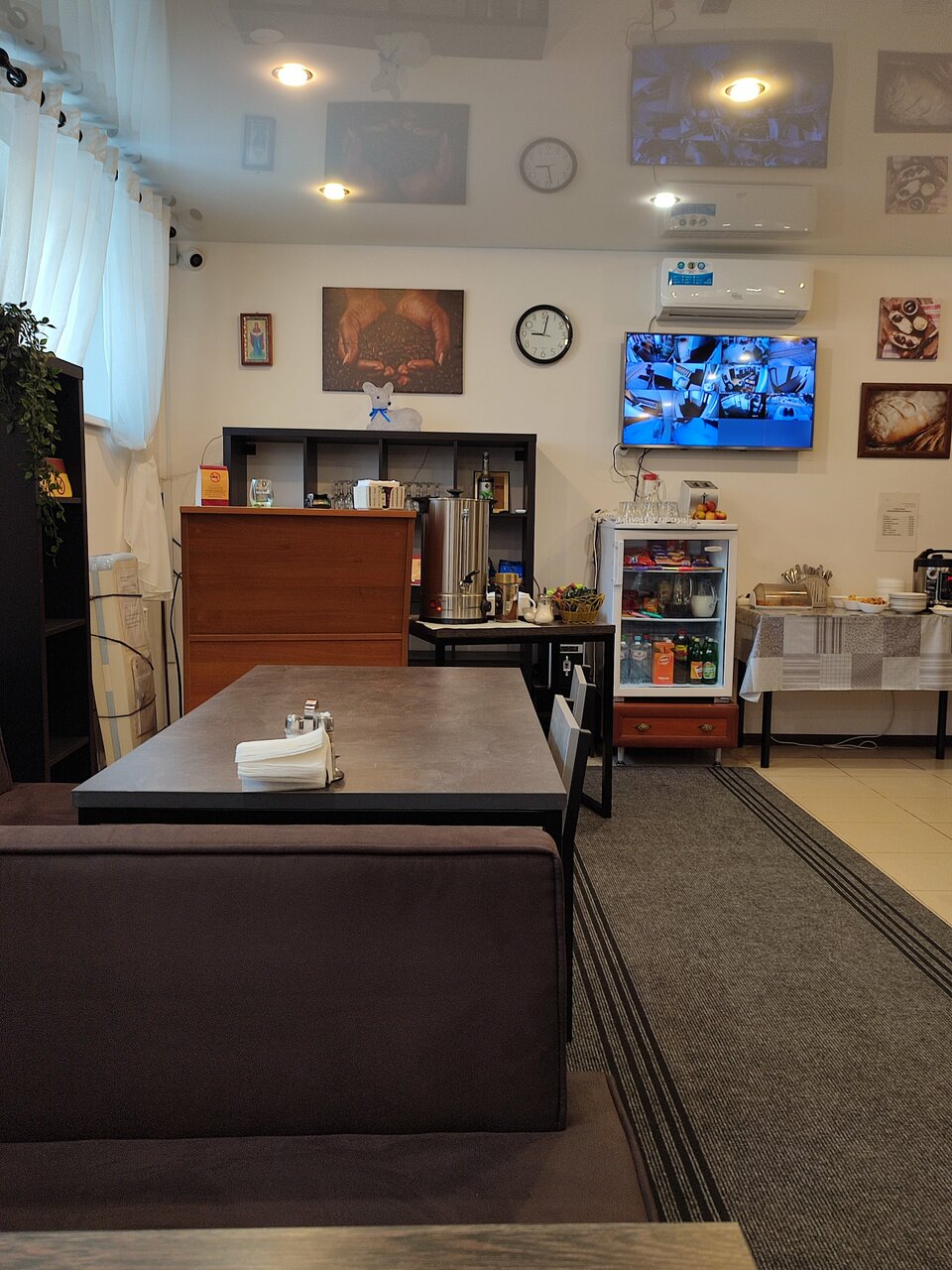 Кафе при гостинице работает до 22, это плюс. Доброжелательный персонал, чистый номер, приятный внешний вид гостиницы. Атмосфера приятная. В пиковую нагрузку (вечер пятницы) может не справиться бойлер и не будет горячей воды. Интернет тоже бывает странным.