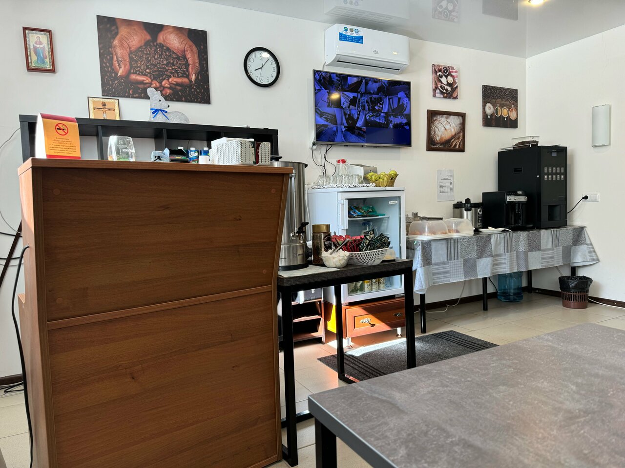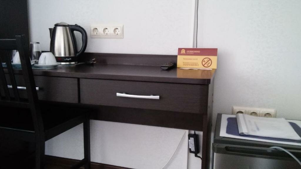 Небольшая придорожная гостиница в частном секторе. Душ, туалет, мебель и т п — всё соответствует таким мини-гостиницам (гостевым домам). Удивили розетки в номере с надписью ‘не работают’ Основной минус — высокая цена для такого сервиса. Один из примеров: в номере есть холодильник и чайник, в коридоре питьевая вода. В моём понимании и опыте, при ценнике 4 000 за ночь должен быть и пакетированный чай/кофе. Спросили у сотрудников и нам дали чай! Попросили сахар для чая, сказали что сахара у них нет! При том, что есть своё кафе Как-то не увязывается такое гостеприимство…