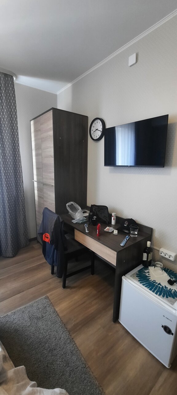 Персонал вежливый. Номер уютный и чистый, но по площади маленький. В гостинице кафе нет, рядом есть ТЦ Лента, а так же Макдональдс через дорогу. Цена — качество, отличный вариант.