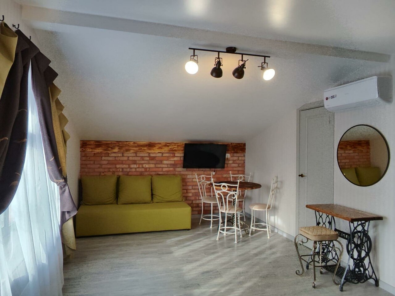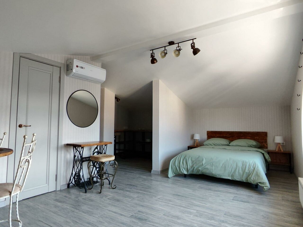 Отдыхали в люксе с мансардой. Отличный чистый номер со всеми удобствами. Забота к деталям — каждому постояльцу предлагается набор для умывания исредства для принятия душа, все индивидуальное, тапочки и вафельные халаты. Очень уютное постельное белье фисташкового цвета, удобные кровати. Единственный минус — только две бутылочки питьевой воды, на две ночи маловато, в отеле нет кулера, а ближайший магазин довольно далеко, приходилось приносить с собой. Большое спасибо хозяевам за высокий уровень сервиса от заселения до мельчайших деталей