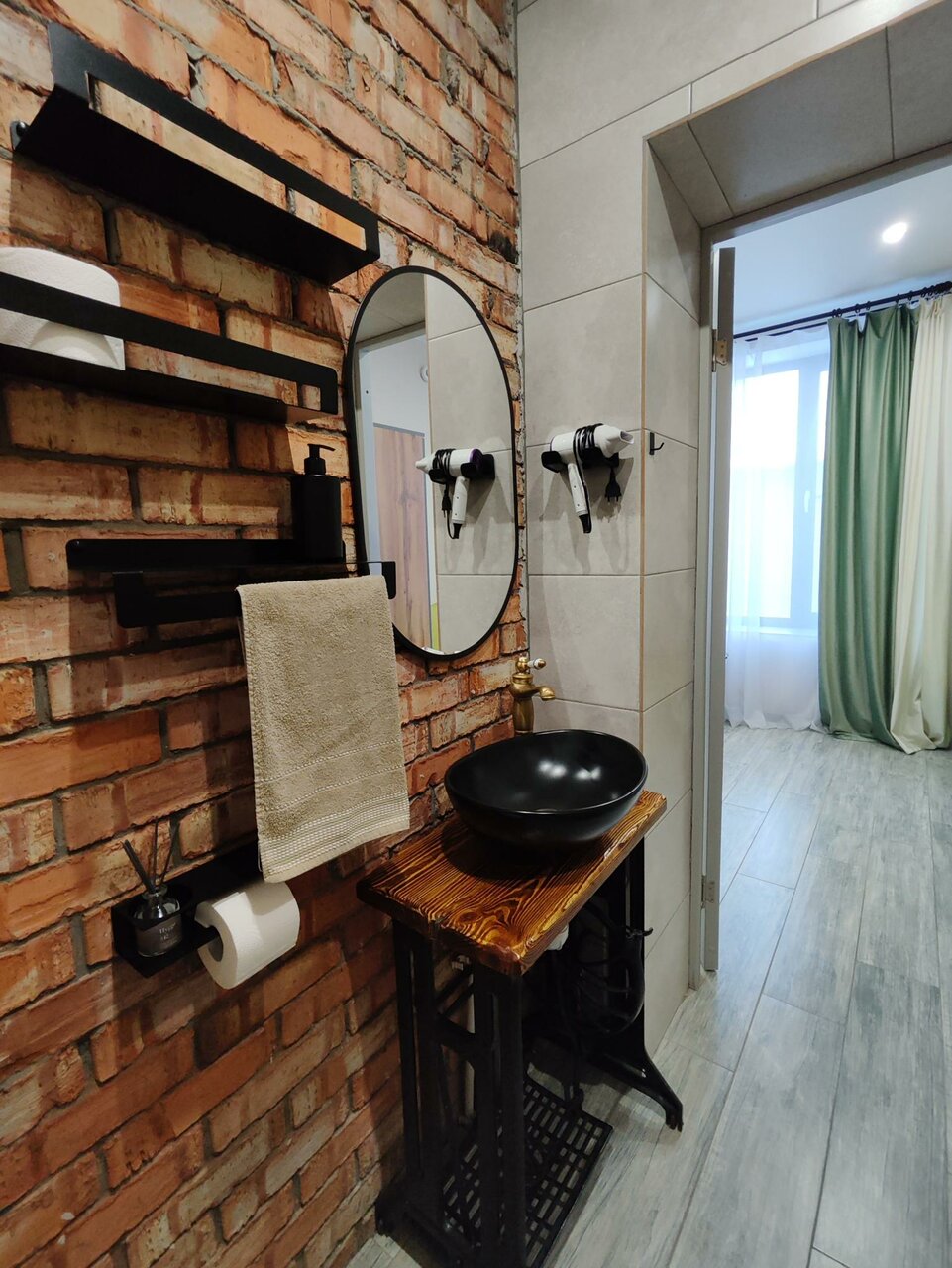 Очень понравилось! Прекрасный ремонт, стильно и эффектно Минус только в том, что в цокольном помещении плохо с вентиляцией, было очень душно и влажно (был дождь, из-за этого влажность повысилась). Заселение супер удобное!!! И оплата тоже. Недалеко остановка, до центра пешком минут 20, на транспорте минут 10-15.