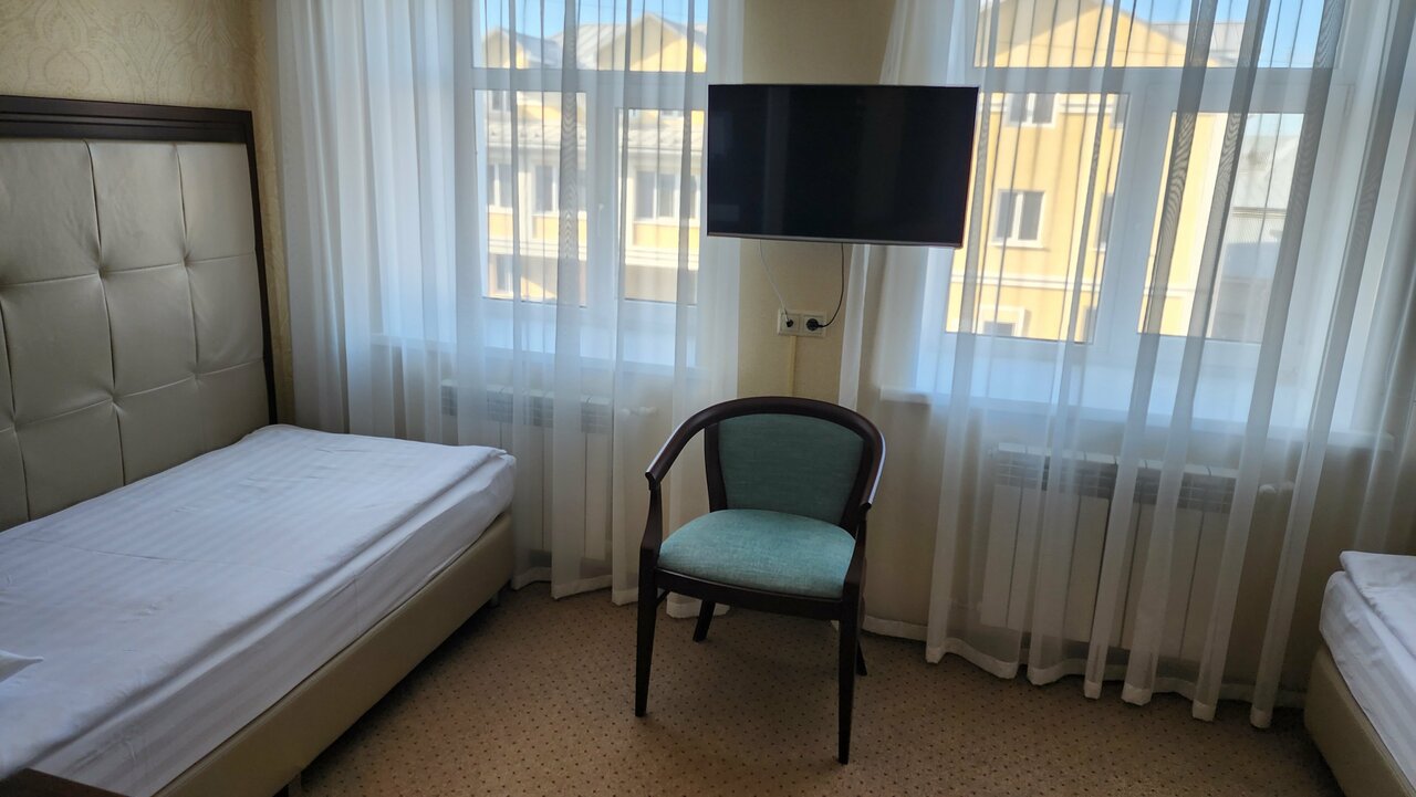 Номер просторный, чистый, теплый. Матрас удобный, постельное бельё, подушки, одеяло уютные. Персонал отзывчивый. Был запрос и нам помогли его решит. Если будем проездом с радостью остановимся там же.