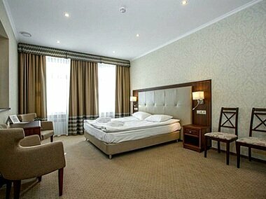 Останавливались в гостинице на ночь, были проездом. У гостиницы своя парковка во внутреннем дворе. Заезжали в первом часу ночи, нас встретили, предложили помочь донести вещи. Идеально чистый номер. При входе вместительный шкаф для одежды с полками, ящиками, вешалками. Для двух человек более чем достаточно. Санузел совместный, полы с подогревом. Хорошие полотенца, мыло, гель для душа, шампунь. Халатов и одноразовых зубных щеток нет. В комнате большой телевизор, тумбочки, стулья, комод для вещей. Очень удобная двуспальная кровать, с двумя одеялами. Есть дополнительная третья подушка, очень приятное постельное белье- идеально белое и свежее. Отличная шумоизоляция: ни с внутреннего двора- а по кругу от гостиницы заведения работают до 2 часов ночи, ни от соседей шума нет. Гостиница в самом центре, поужинать в час ночи было не проблема, различные кафе, разная кухня. Завтракали не в гостинице, в кафе по соседству. Обязательно вернёмся еще.