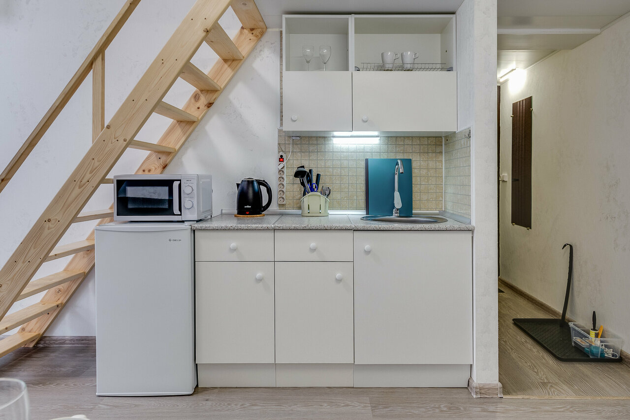 Отличные апартаменты. По фотографиям я считал что они просторнее, однако, прожив тут 6 ночей я убедился, что пространства вполне достаточно. В наличии Чайник, Микроволновка, Холодильник (достаточно вместительный) и Электроплитка на одну конфорку. Посуда есть и, даже, разнообразная (4 вида тарелок по 3-4 экземпляра, есть все столовые приборы, кастрюли трёх размеров и сковорода), но до моего приезда не было ни одной стопки) *исправлено) с представителями гостиницы общение было приятным)