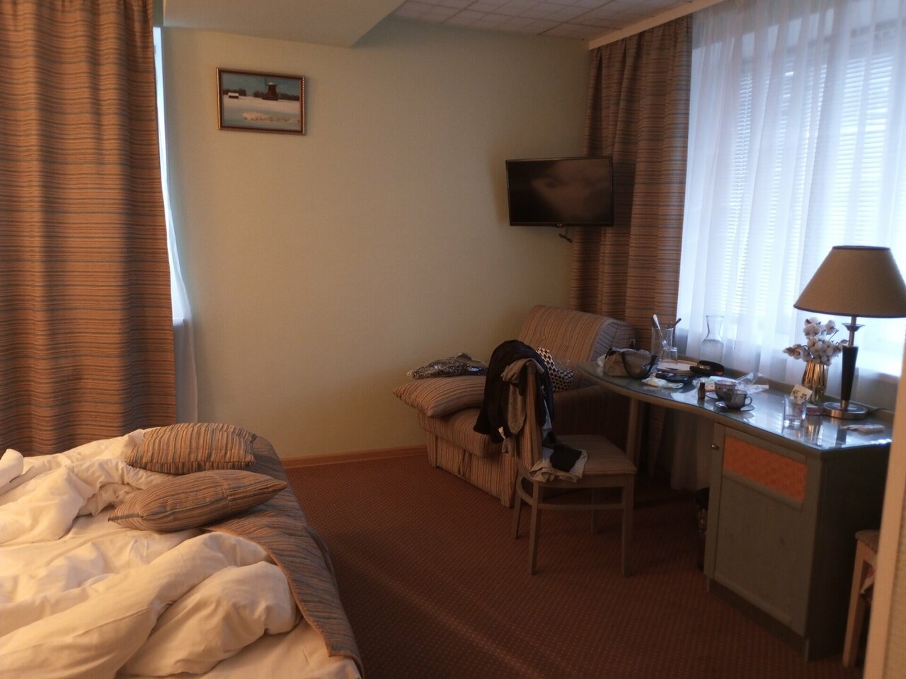 Очень удобный номер, а главное просторный. Лично мне и моей подруге очень понравилось качество подушек, одеял и белья — они дышат. Очень хороший и отзывчивый персонал. Гостиница расположена рядом с центром. В общем одни плюсы.