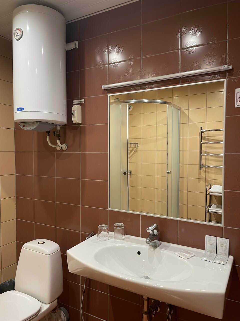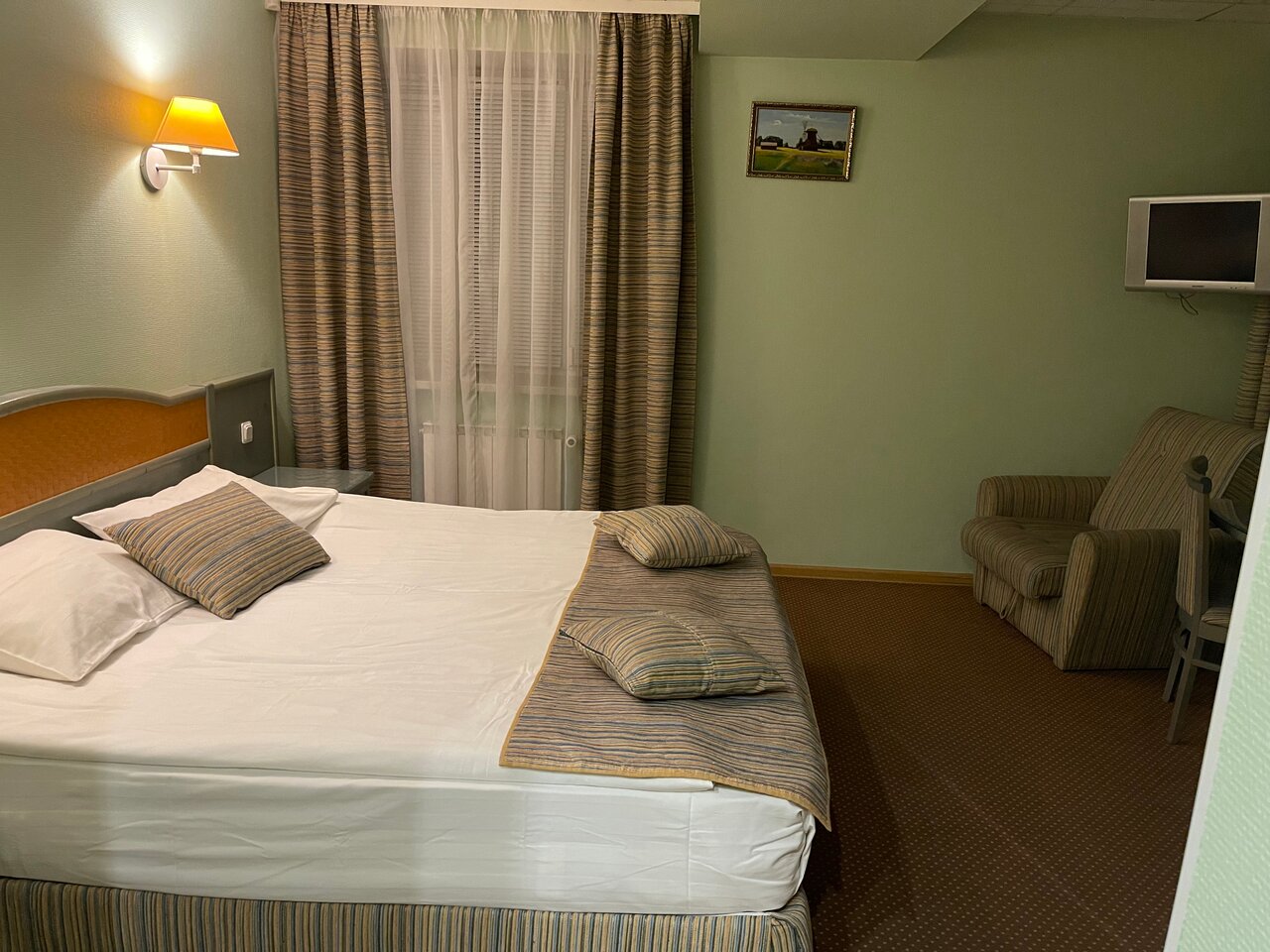 Спасибо , все понравилось. Хороший уютный отель, да , номер немного устаревший, но главное чисто и без посторонних запахов. Были с 31 на 1 числа , есть своя парковка, прям перед входом в отель, очень удобно , особенно если с маленьким ребенком. В номере все необходимое есть. Предоставили для нашей дочки манеж, абсолютно бесплатно , одеялко и подушку , за чистоту детского спального места отдельная благодарность! Расположение хорошее. В отеле тихо и спокойно. И конечно же административный персонал , очень вежлив и улыбчив , оформили нас быстро. Завтрак в номер , для нас это было удобно! Завтрак вкусный(омлет с овощами рекомендую) и калоритный! Есть кулеры с водичкой в коридорчике. Немного тормозил телевизор, но нам было некритично! В целом нам было очень уютно. С удовольствием останемся еще при возможности.
