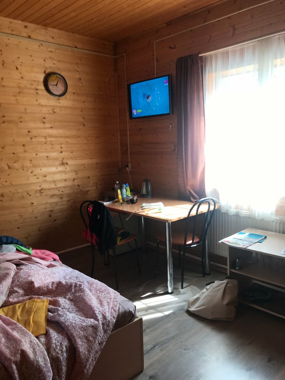 Очень спокойно есть парковка вокруг сосновый лес! Номер теплый чистый Для отдыха все удобства